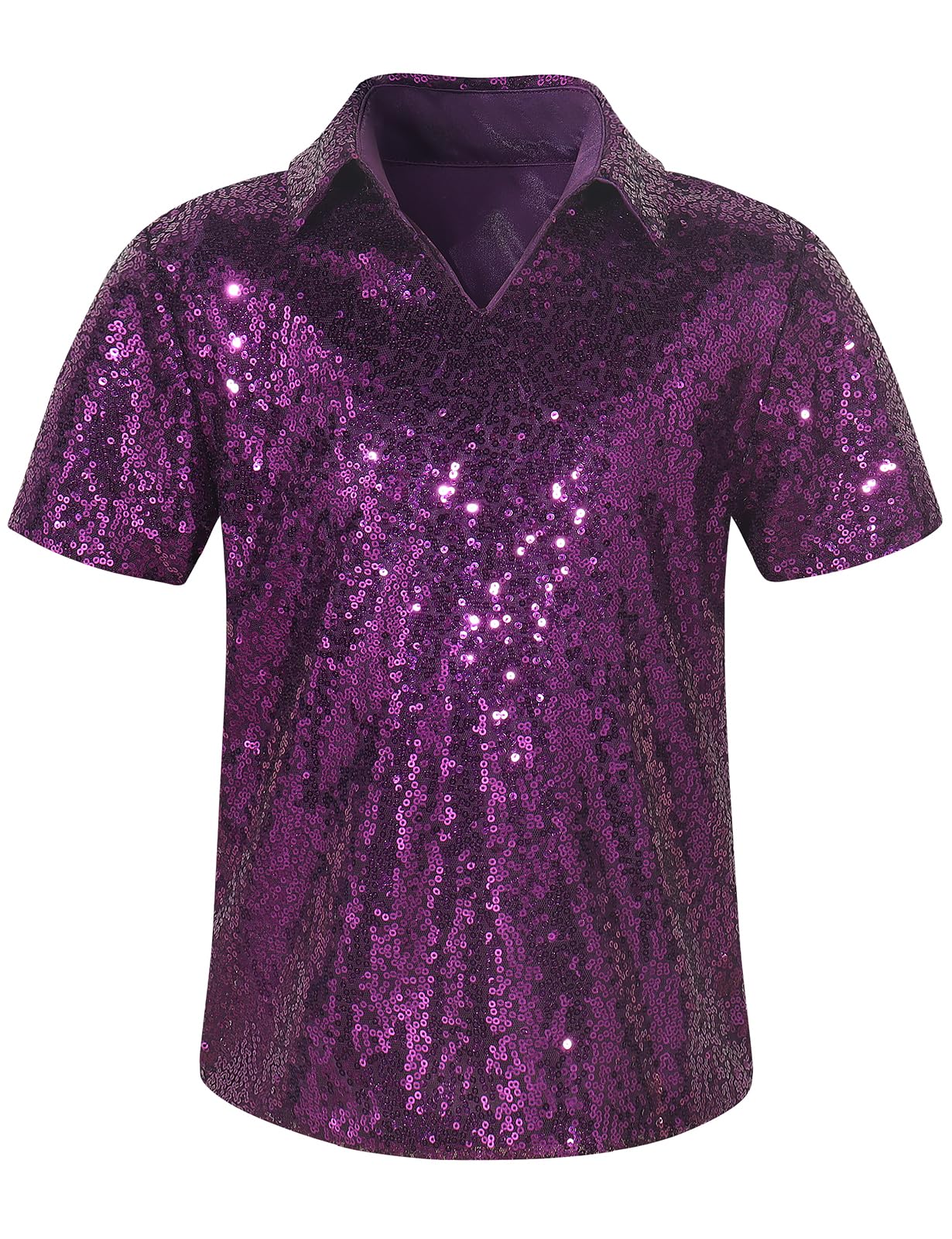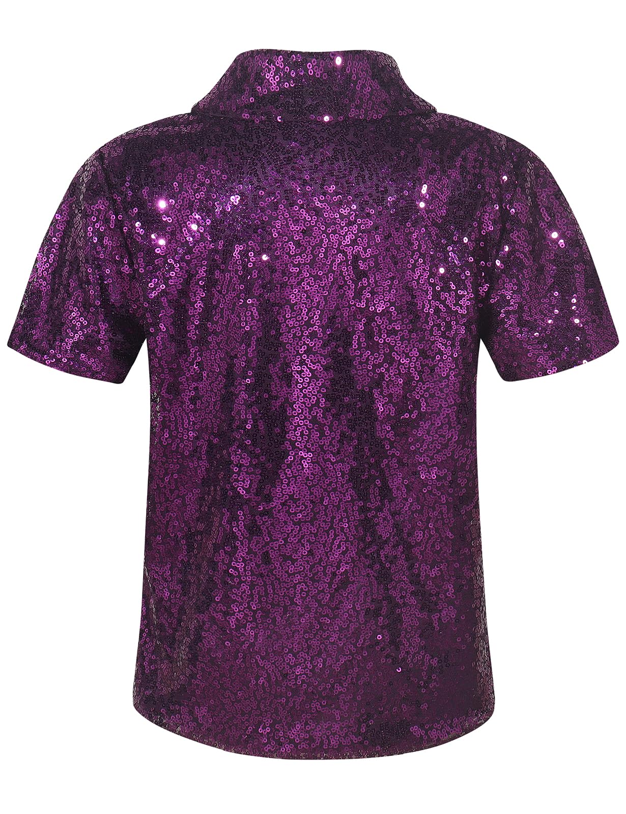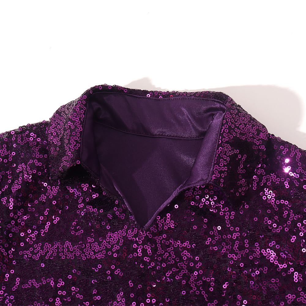 This kids shiny glitter shirt can match chino shorts, skinny pants, suit pants, slacks, jeans, etc., as you like, which creates a charming silhouette and adds to the overall dressy look