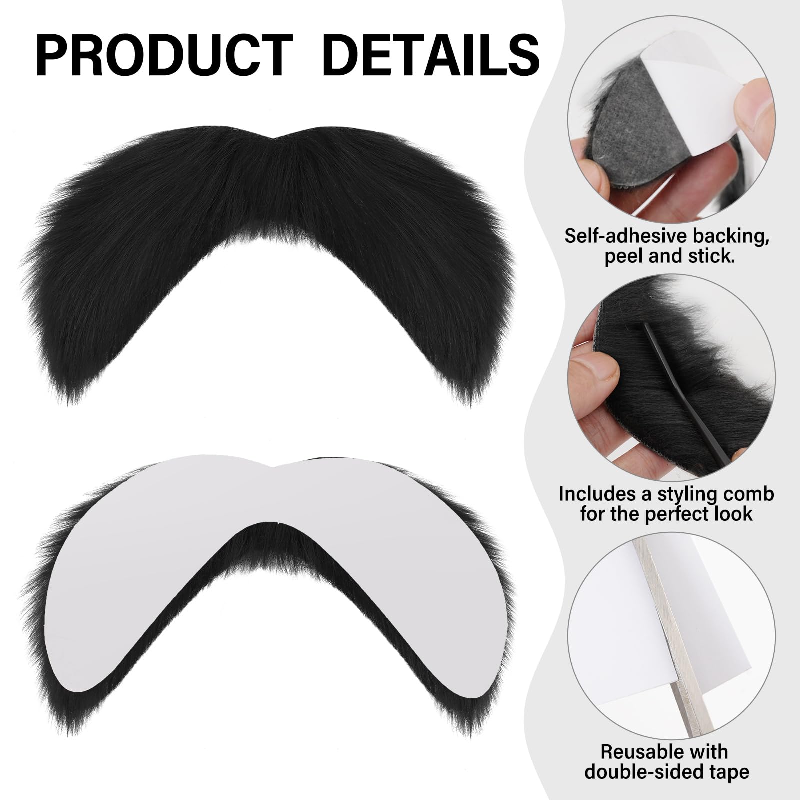 Description Imagine walking into a party with the fluffiest, most eye-catching mustache and eyebrows anyone’s ever seen. Heads turn, laughter erupts, and suddenly, you’re the life of the event. That’s the magic of our Fluffy Mustache and Eyebrows Set! It's more than just a fake mustache – it’s your ticket to creating hilarious, unforgettable memories. Unlike those flimsy fake mustaches that fall off as soon as you smile, ours comes with top-quality double-sided tape that keeps your mustache and bushy eyebrows firmly in place, no matter how much you laugh, talk, or dance. And if you feel like switching things up, the included comb lets you groom and style your look, so you’re always ready for the next big role – from quirky grandpa to over-the-top villain. Perfect for Halloween, costume parties, or just when you want to bring a bit of joy to a dull day, this mustache costume set promises hours of fun and laughter. Reusable and comfortable, you can count on it to be your go-to accessory whenever you feel like transforming into someone hilariously different. So go ahead, stick on this fake mustache, and get ready to spread the laughs!