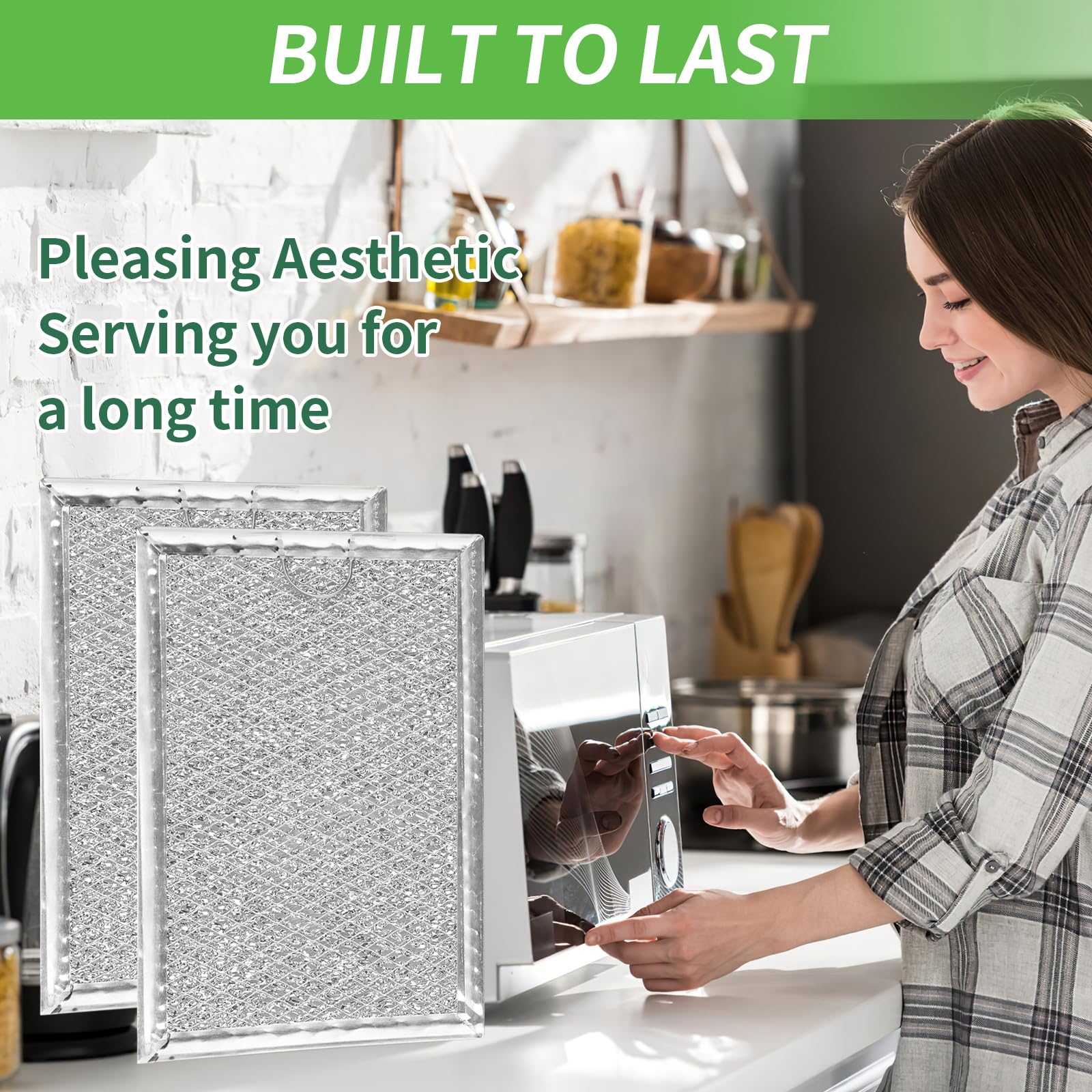 【Corrosion Resistant & Durable】Crafted from high-quality aluminum, this microwave filter replacement boasts excellent corrosion resistance, high strength, and lightweight properties. Microwave vent filter features a multi-layer aluminum foil honeycomb filter, enhanced with a rigid aluminum flat mesh for added protection. The reinforced frame ensures long-lasting durability.
