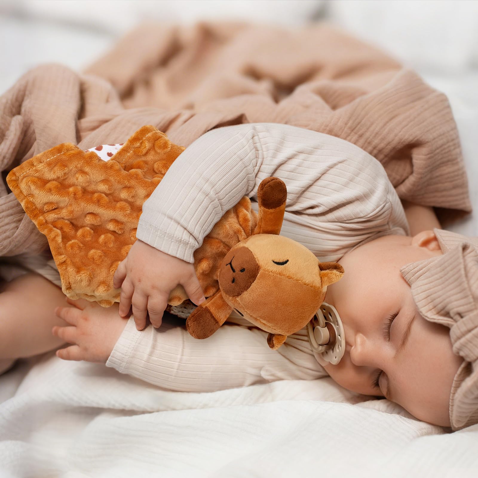 【Lovey Blanket Comfortable Fabric 】Capybara plush animals are made of soft and safe polyester fiber material. The soft dot like plush fabric brings more touch to babies, enhances their sense of security, and is a comfortable toy that can be hugged and touched. It is safe for babies, climate friendly, and has no shedding or pilling; Sleep is crucial for the growth and development of infants. No matter where they are, in a crib, stroller, or car seat, comfortable capybara comfort pads can help babies fall asleep quickly or feel safe.