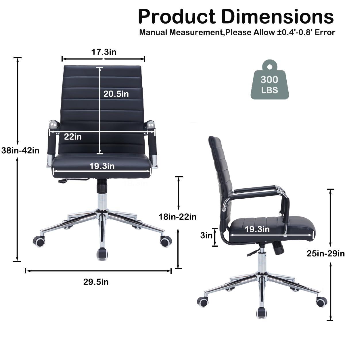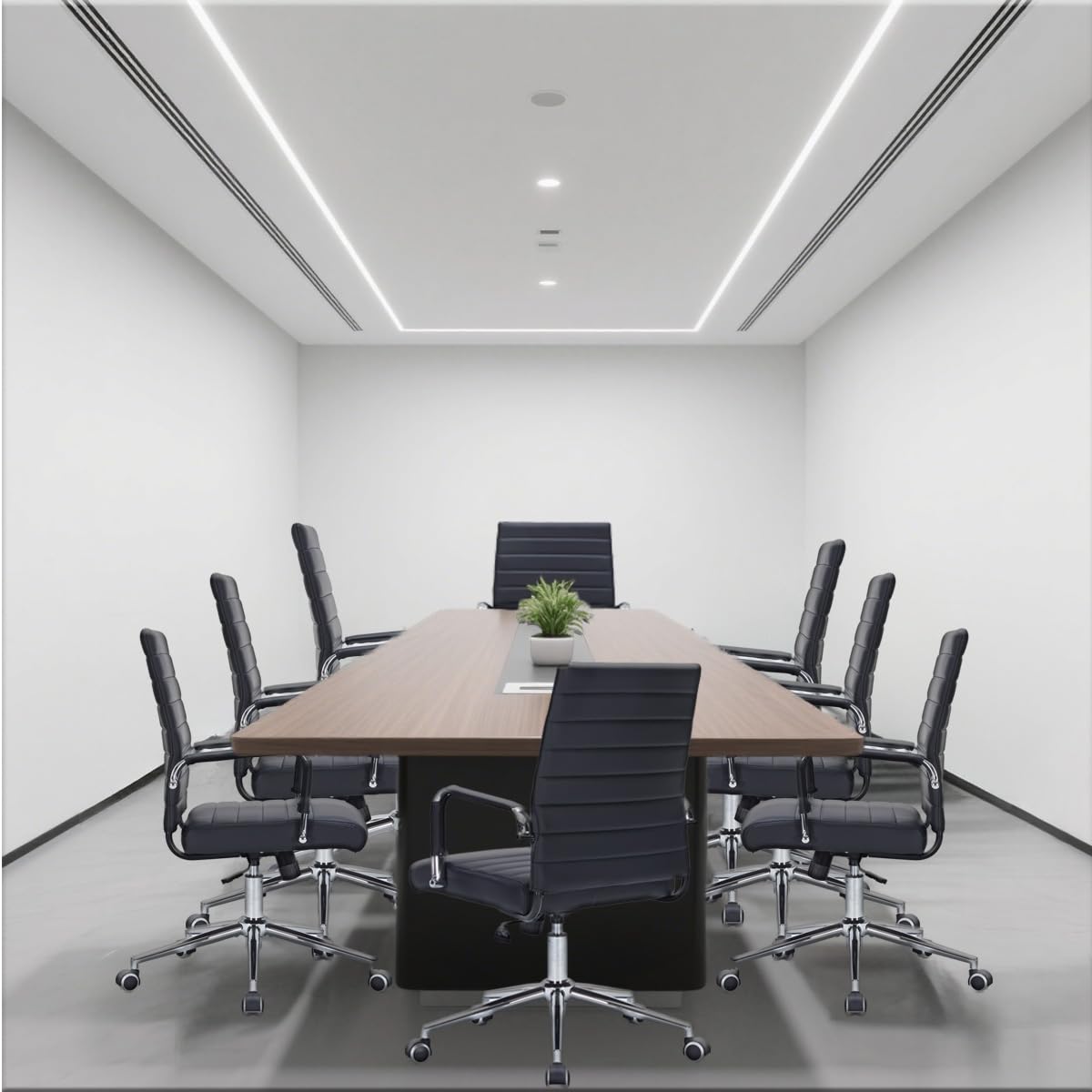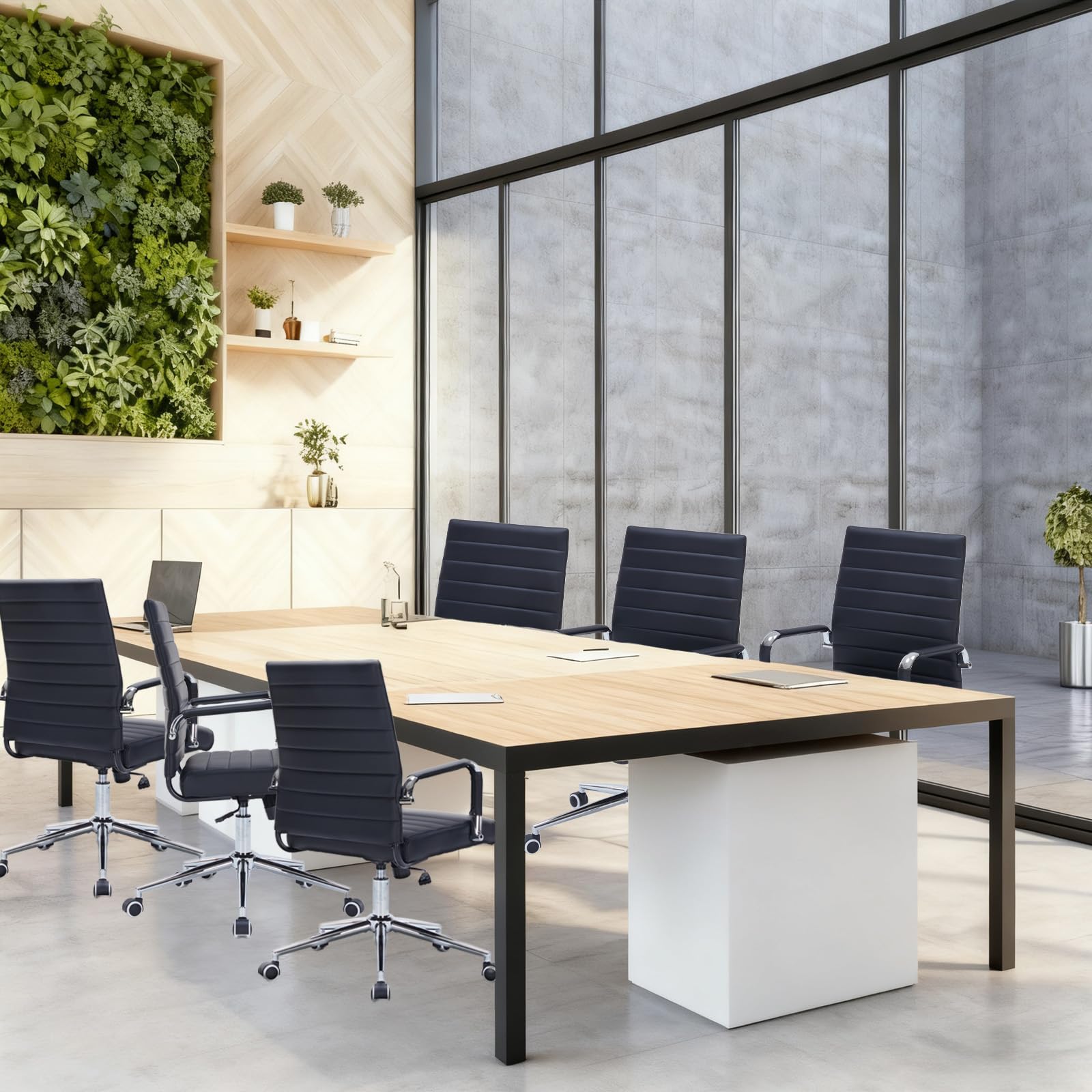 Premium black office chair crafted with PU leather desk chair ribbed upholstery, offering a modern office chair aesthetic that elevates home office desk chairs, conference room chairs, or teacher chair setups.
