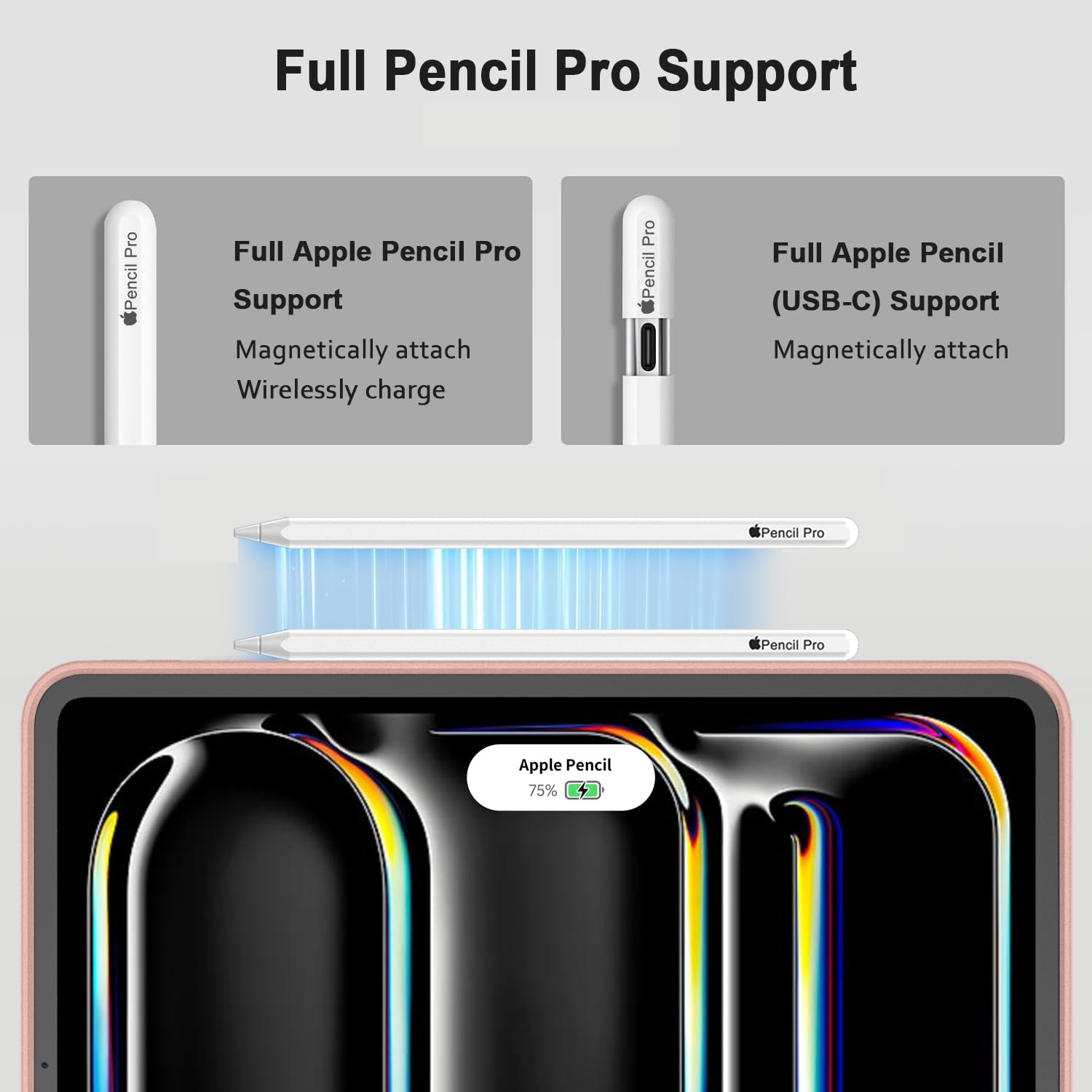 [Supports Pencil Pro and Pencil (USB-C)] This iPad Pro case fully supports Pencil Pro and Pencil (USB-C) with a recessed side groove for magnetic charging and a magnetic clasp to keep your Pencil secure
