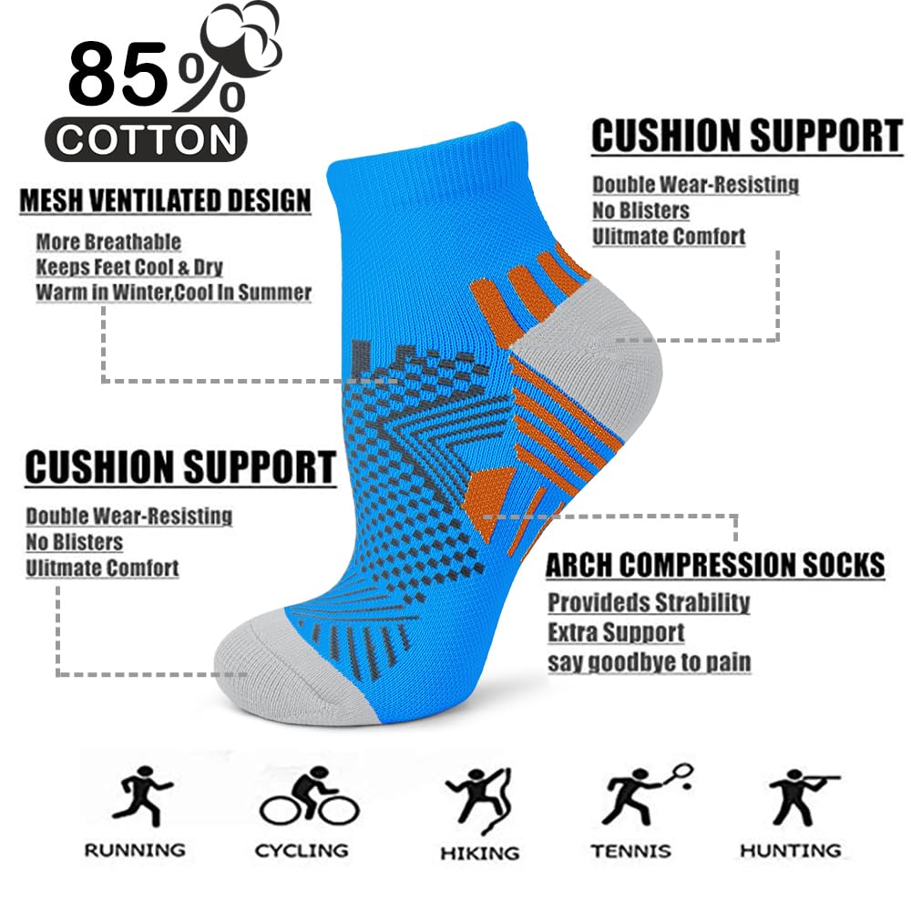 Breathable & Moisture Wicking – Made with copper fibers and ventilated mesh, our ankle support socks keep your feet dry, fresh and odor-free, preventing blisters even during long hours of wear