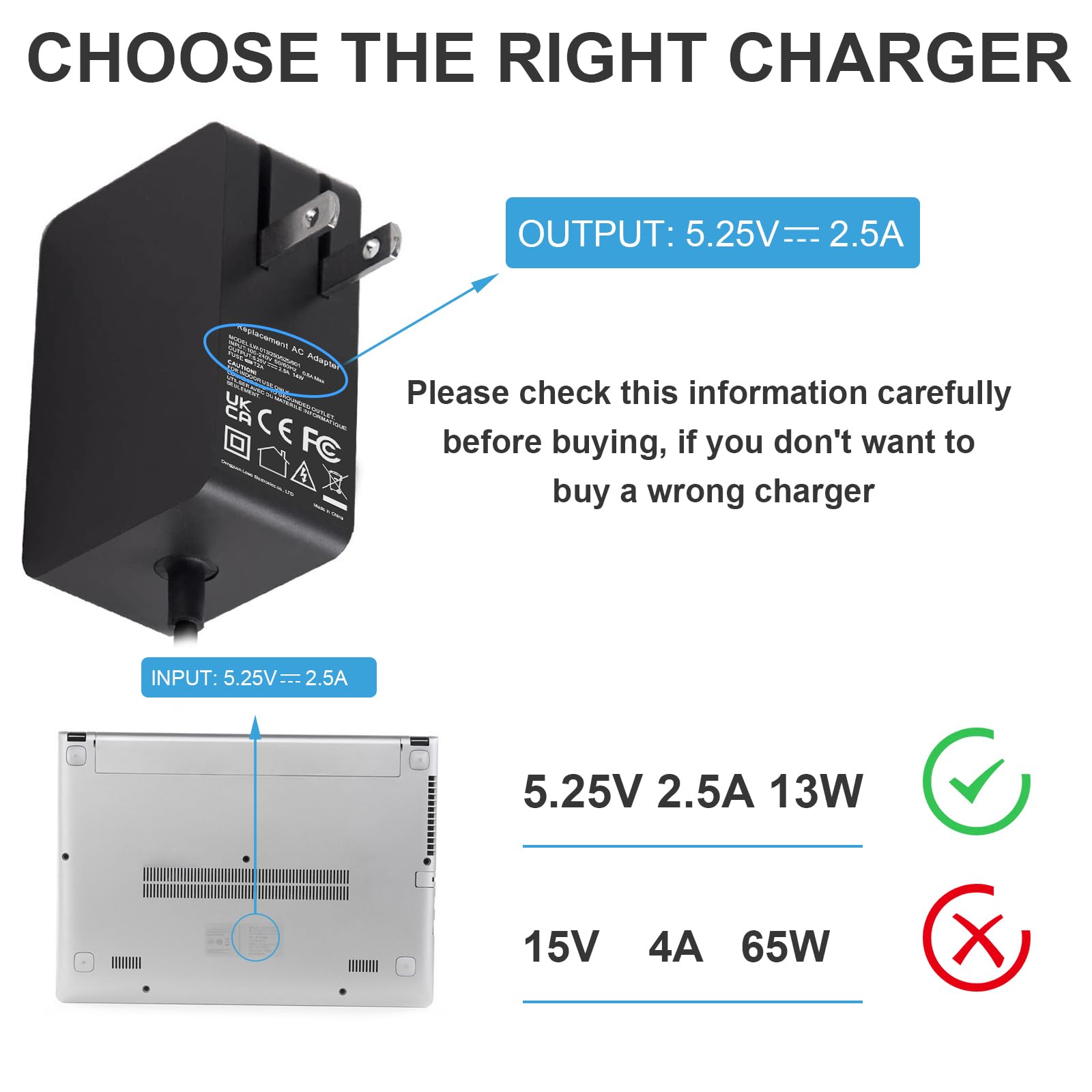 Input: AC100-240V, 50/60Hz (worldwide use); Output: 5.2V 2.5A 13W. Current Rating: 2.5 Amps. Cable AC Cord: 4.92Ft. Item Weight: 0.29 Pounds.