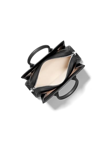 Materials: Made from leather with silver-tone hardware Our Leather: 100% of the leather in this product comes from tanneries receiving Leather Working Group Gold- or Silver-certification in recognition of their environmental performance Attention to Details: Interior back slip and zip pockets, center zip compartment, magnetic fastening and polyester lining. 10”W X 7.25”H X 4.75”D with a 3.5" handle drop