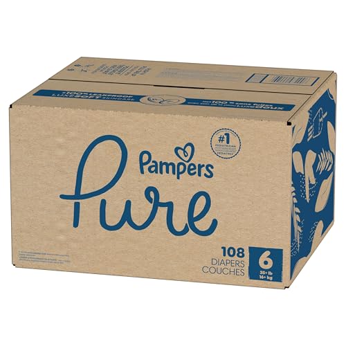 Give your baby the love and care their skin deserves with Pampers Pure, our most premium diaper yet. Pampers Pure is the only diaper with a vitamin-enriched liner that helps protect baby’s skin. Designed with Pampers’ LockAway Core, it stays 2x drier than Honest Diapers, protecting your little one from leaks. Pampers Pure Baby Diapers, from the #1 pediatrician-recommended brand, are made with ingredients you can trust and clinically proven to provide skin protection. They are hypoallergenic and free of elemental chlorine, parabens, latex, and fragrance, providing protection against the 4 main causes of diaper rash: overhydration, friction, increased pH, and mess on skin. Plus, you can complement their diapers with Pampers Pure Baby Wipes for an even better changing experience. Pampers Pure Disposable Diapers come in all the sizes your baby needs at every stage—from newborn to sizes 1–7. Just size by weight to find your baby’s perfect fit. Your number one priority is your baby’s well-being; ours is giving you the best solution so you can focus on loving them. Pampers Pure Baby Diapers come in the following sizes: Newborn (up to 10 lbs.) size 1 (8–14 lbs.), size 2 (12–18 lbs.), size 3 (16–28 lbs.), size 4 (22–37 lbs.), size 5 (27+ lbs.), size 6 (35+ lbs.), and size 7 (41+ lbs.).