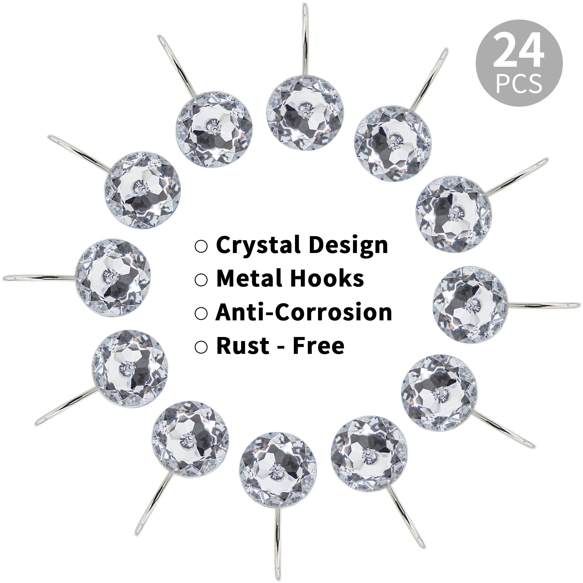 STYLISH AND FUNCTIONAL - Elevate the look of your shower curtain with these hooks featuring a sleek and modern design. The addition of rhinestone decorative accents adds a touch of elegance that complements any bathroom decor.