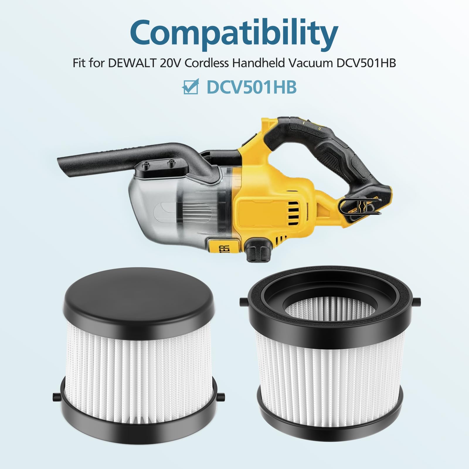 【Perfect Fit】DCV5011H hepa filter compatible with DEWALT DCV501HB 20V Cordless Handheld Vacuum Cleaner, Compared part # DCV5011H.