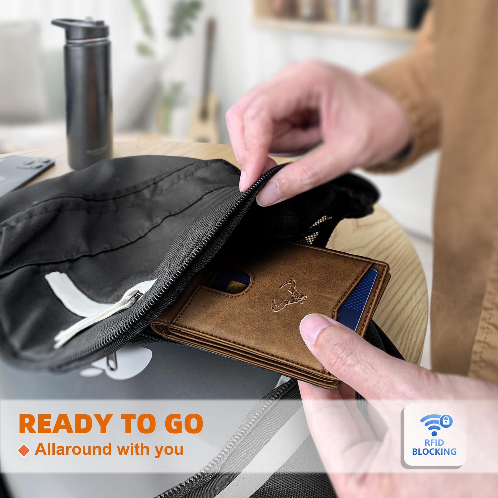 COMPACT DESIGN--Enjoy effortless portability with our wallet's sleek dimensions. At just 4.5x3.2 inches,it slips effortlessly into front or back pockets for easy carry;