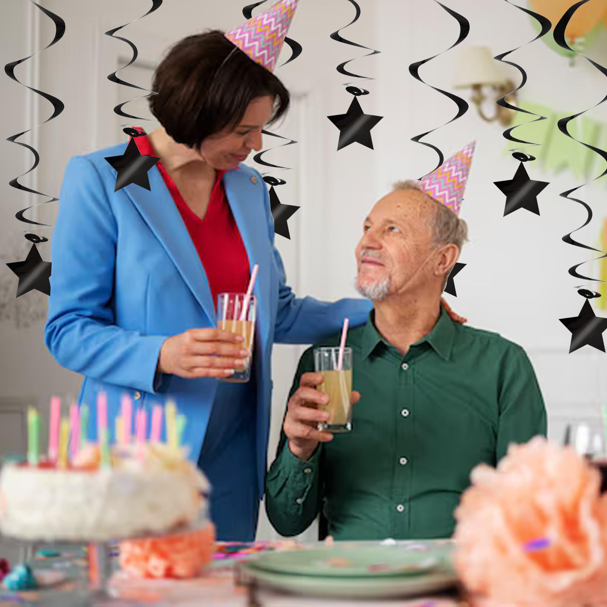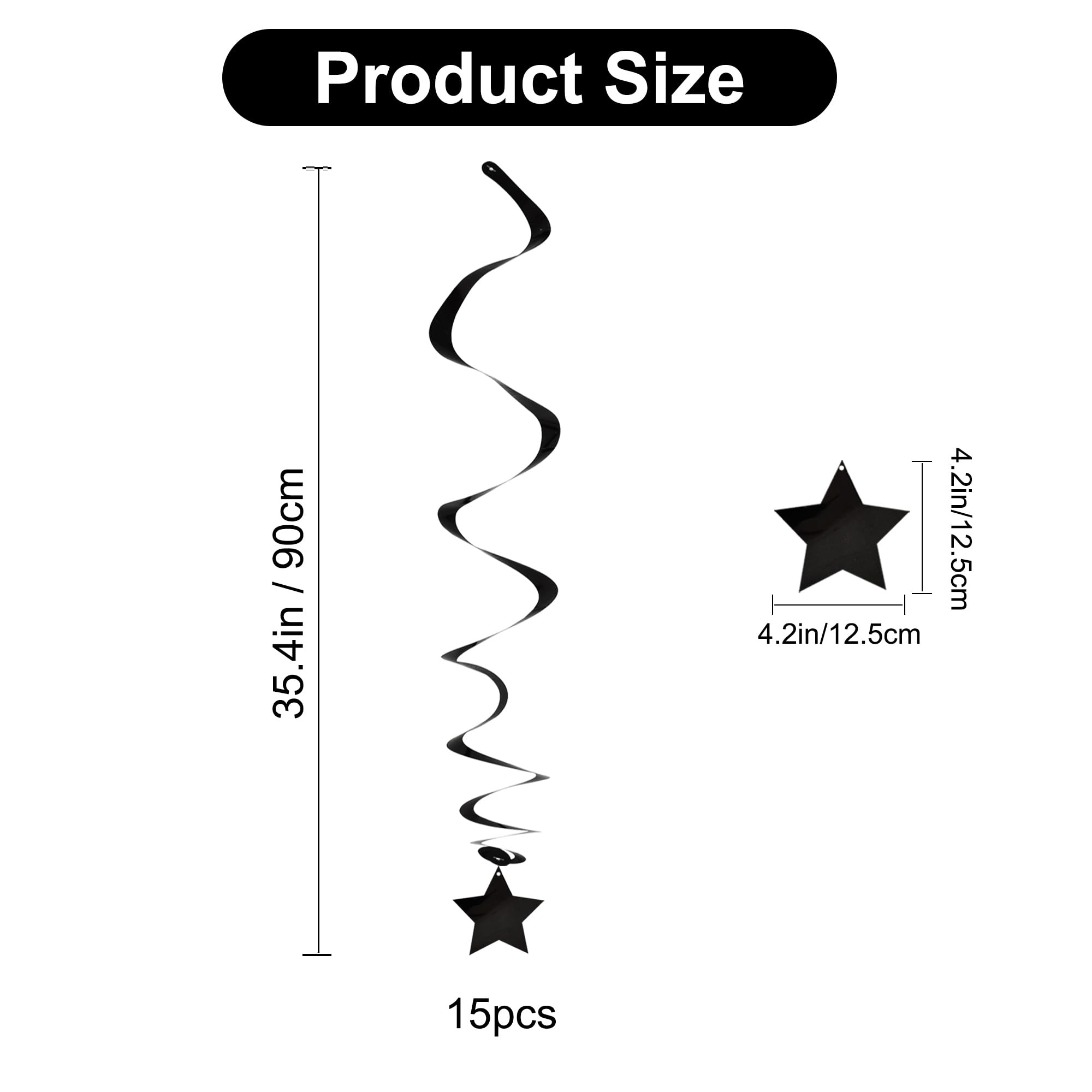 【Package include】A total of 15 pcs hanging swirl decorations, including 15 double swirls and 15 swirls with PVC star. There are 15 strings in total, each of which is connected with a double swirls and a PVC star. Flexible swirls, hanging length can extend to approx 36"/91cm long.