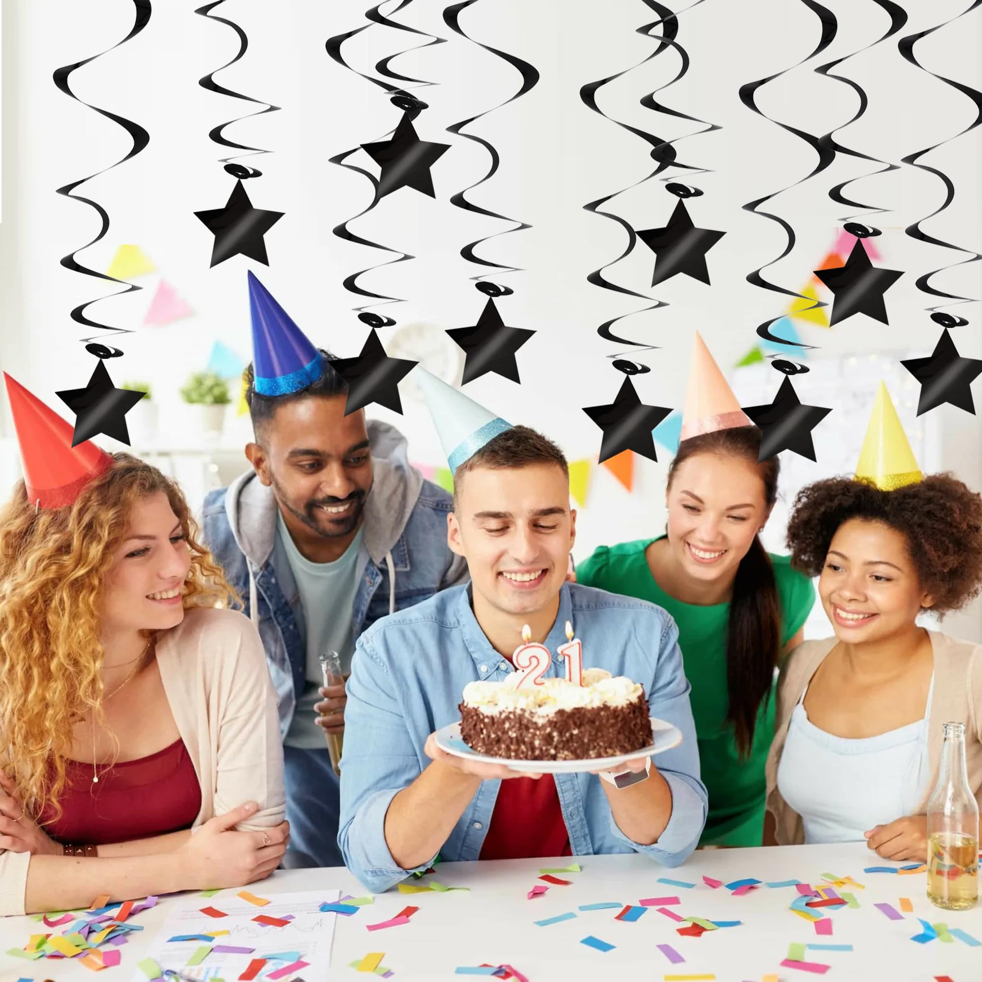 【Decoration】These Hanging stars party supplies can catch the light and make the room festive, great add in for any birthday party graduation party decorations.