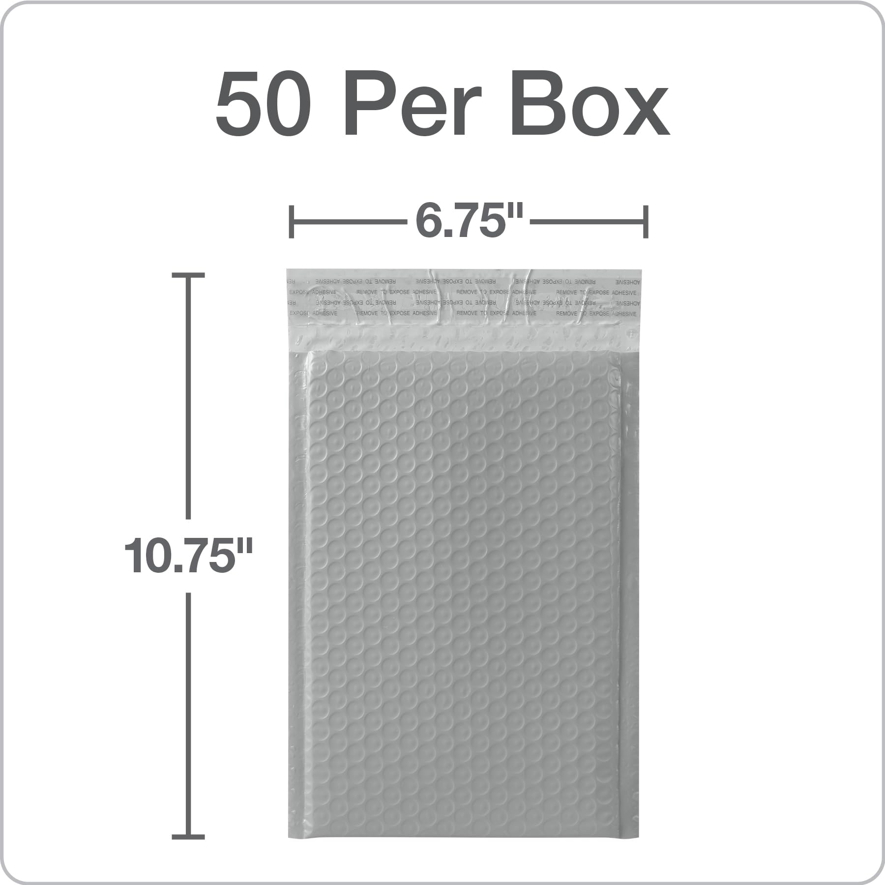 Stock up on bubble mailers for your office, home or business; you get 50 gray poly padded mailers with an easy peel-off closure and a useable size of 6" x 9"