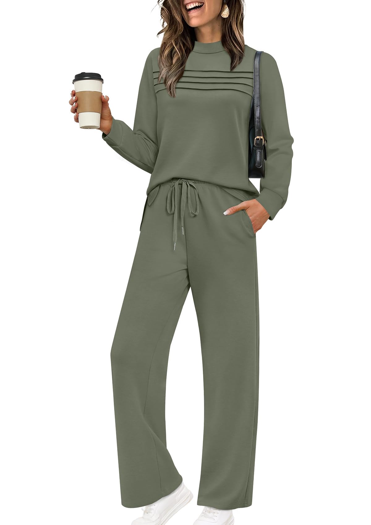 Features - This Sweatsuit Set featured half zip long sleeve oversized sweatshirt & high waist drawstring wide leg sweatpant for a 2 piece tracksuit set. Matching set sweatpants 2 piece sweatsuit are great for daily life, gym, sport, running, active, lounge, travel, beach, fitness and home.