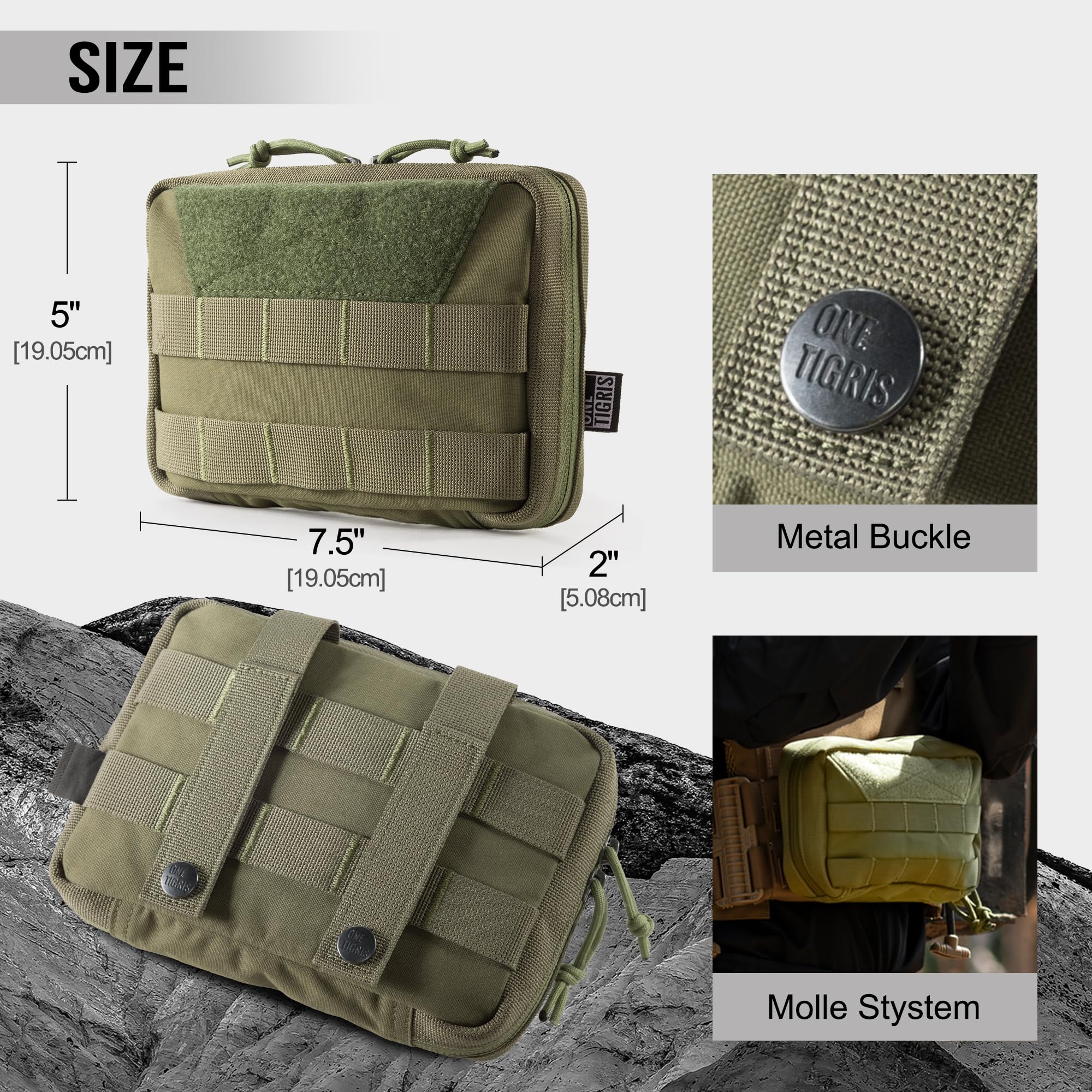 MOLLE SYSTEM: Tactical Molle Pouch with Molle back straps can be attached to tactical backpack, battle belt, or other Molle gears as an extra exterior pouch. Loop panel for military patches with webbing & straps for MOLLE compatible gear.