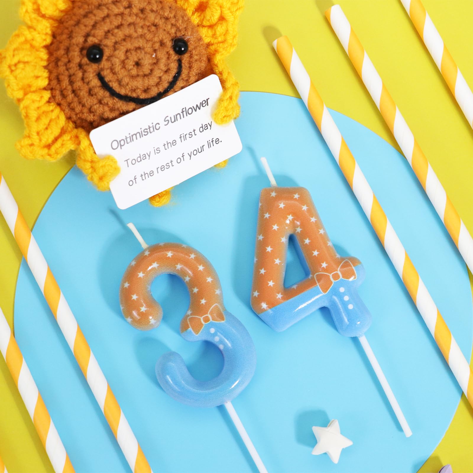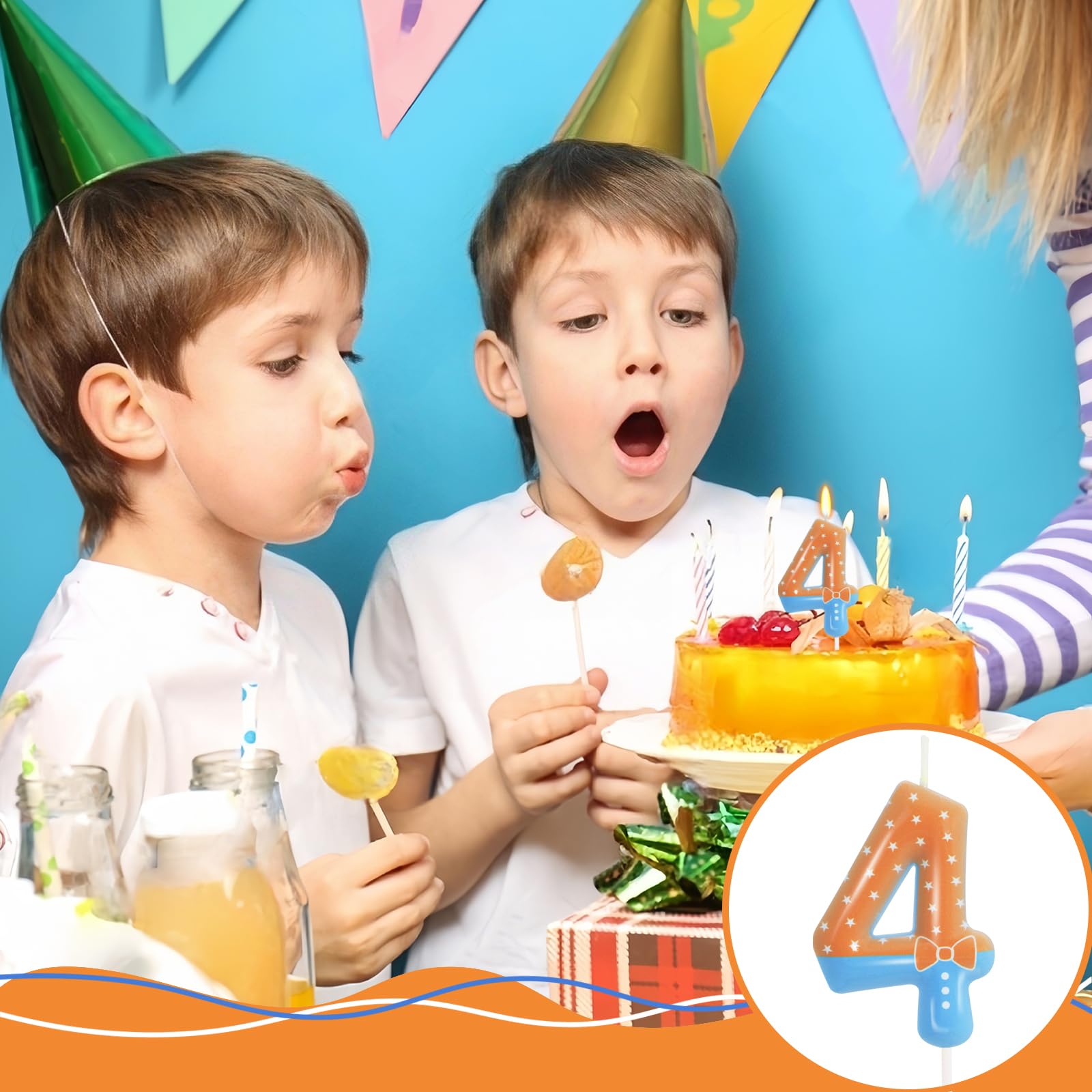 Product Design: Vibrant orange & blue number candles with playful star patterns! Perfect for fun-filled cartoon birthday celebrations