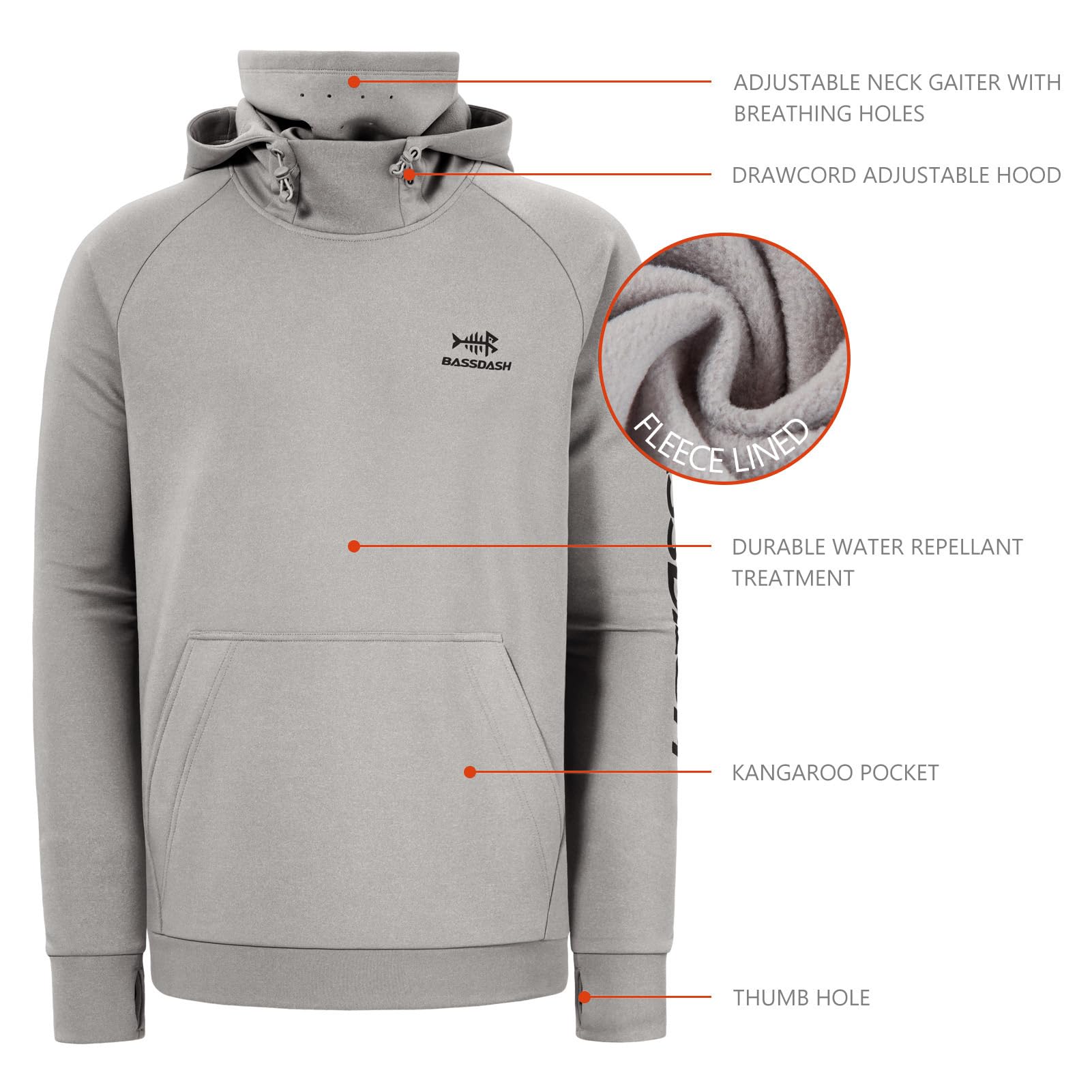 Water and stain resistant treatment makes dirt easier to clean as well as making the sweatshirt a nice gear for fishing on cool rainy days; Advanced pill-resistant and anti-static fabric with high-stitch density for durability; Stretchy elastic fabric for free movement; Soft fleeced lining provides extra warmth