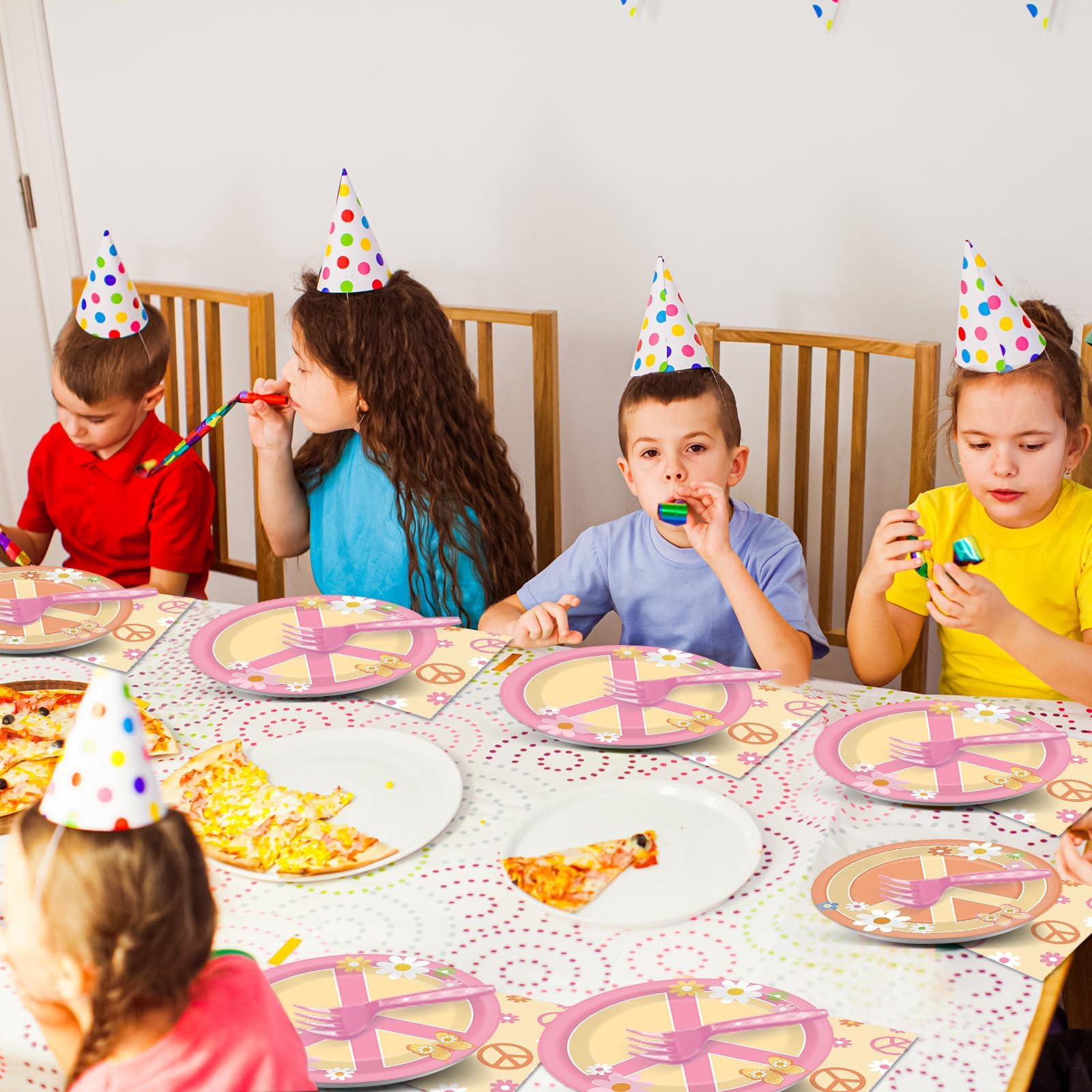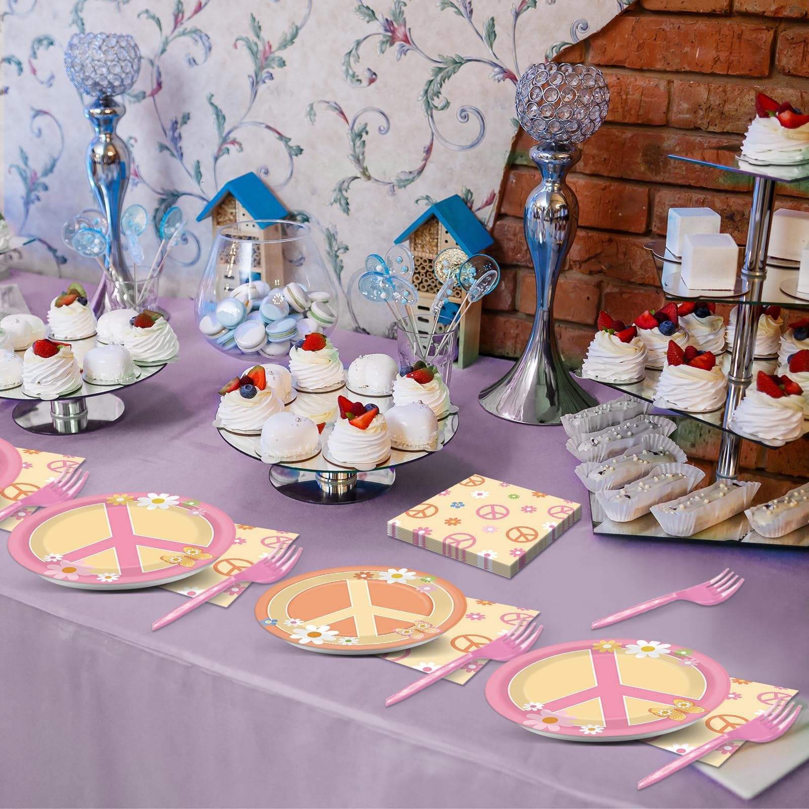 Package included: You will receive 24 pcs 9" peace sign paper plates, 24 pcs 7" peace sign paper plates, 24 pcs 6.5" peace sign napkins, and 24 pcs plastic forks, each set can serve 24 guests.