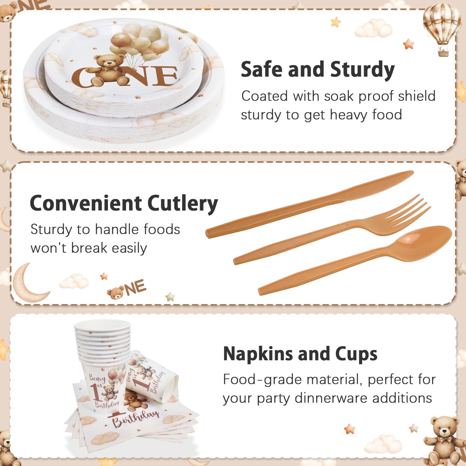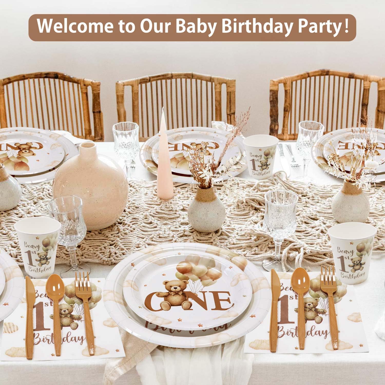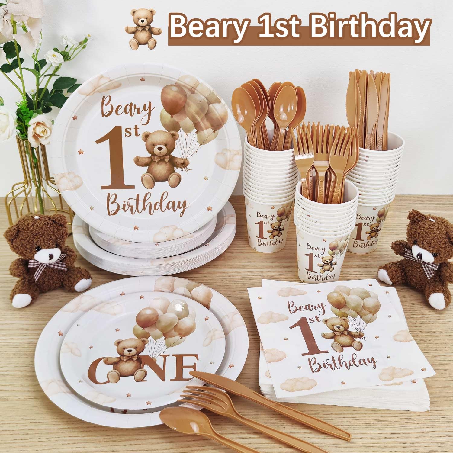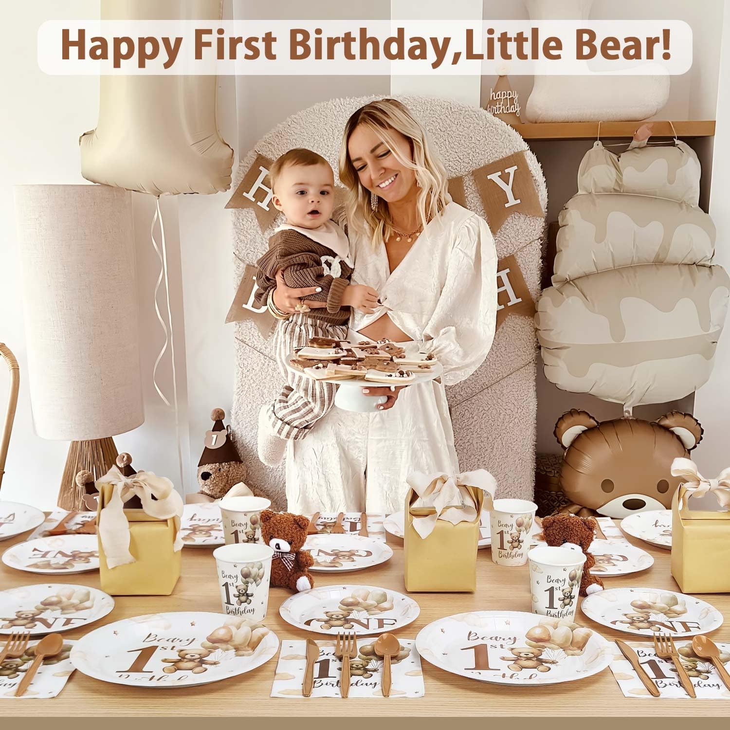 Match with Bear First Birthday Decorations: This set effortlessly complements any my beary first birthday decorations, including bear Banner, balloons, and cake toppers. Create a cohesive and cuteness party atmosphere