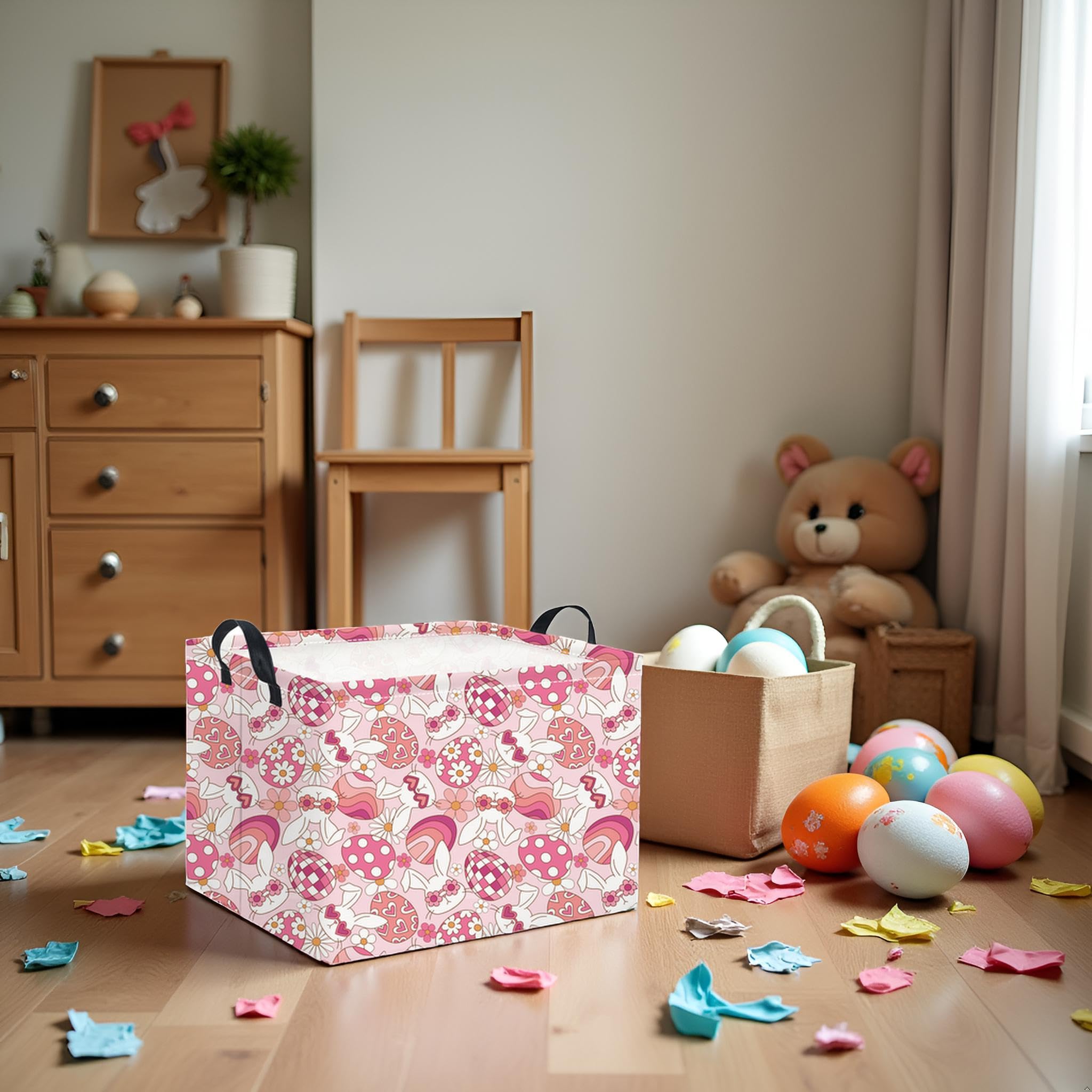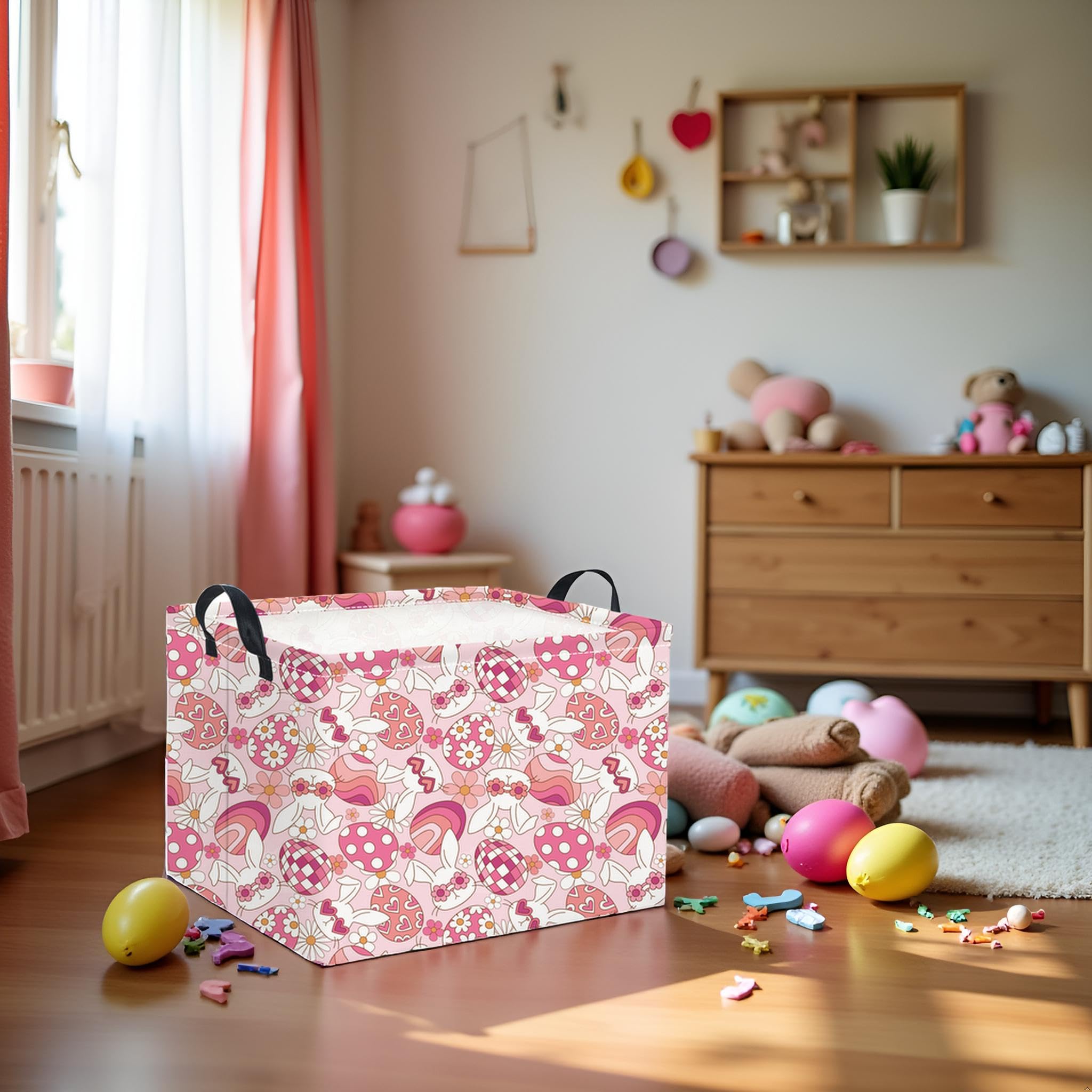 SIZE:the size of pink easter basket is 14.9 x 10.2 x 9.8inch, 1pcs. This large size can store various items, very suitable for all kinds of storage compartments and shelves.