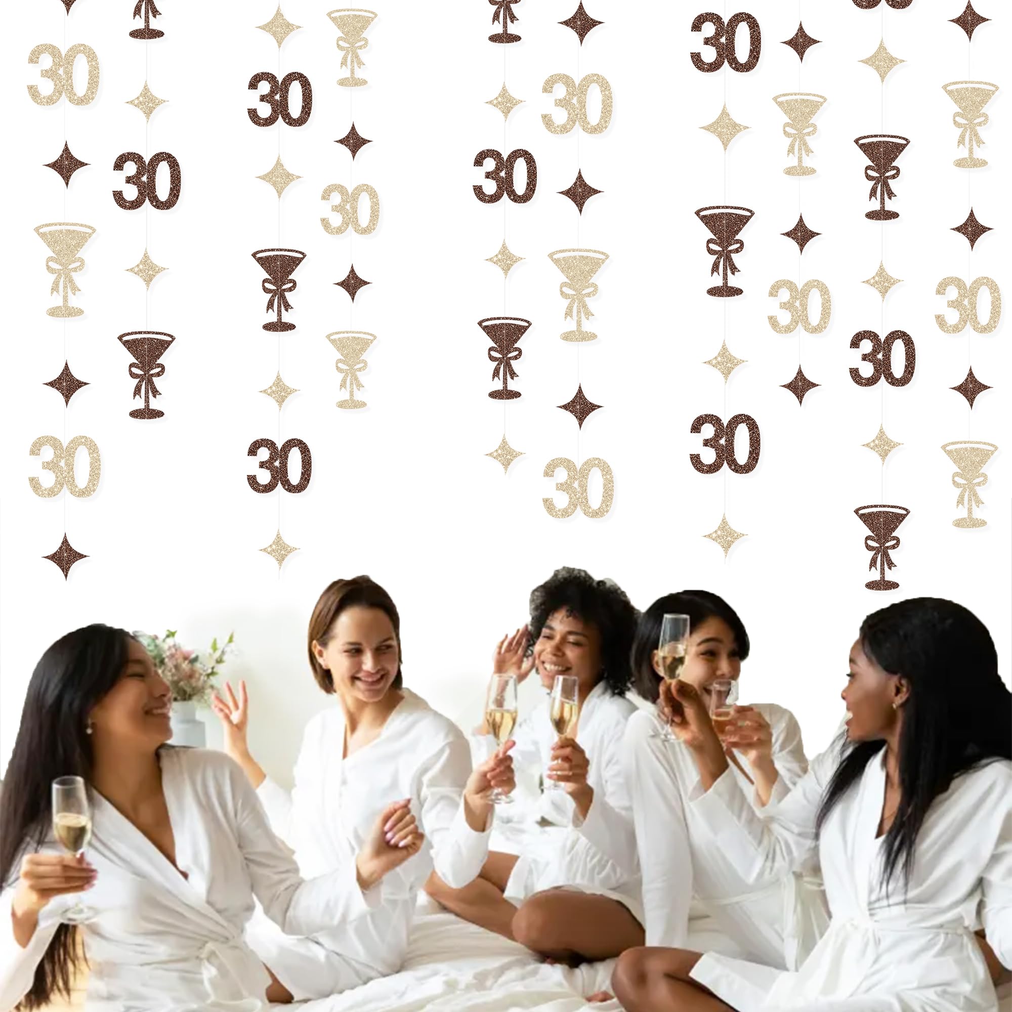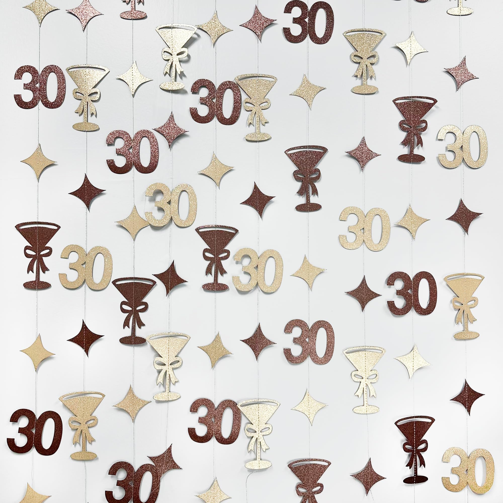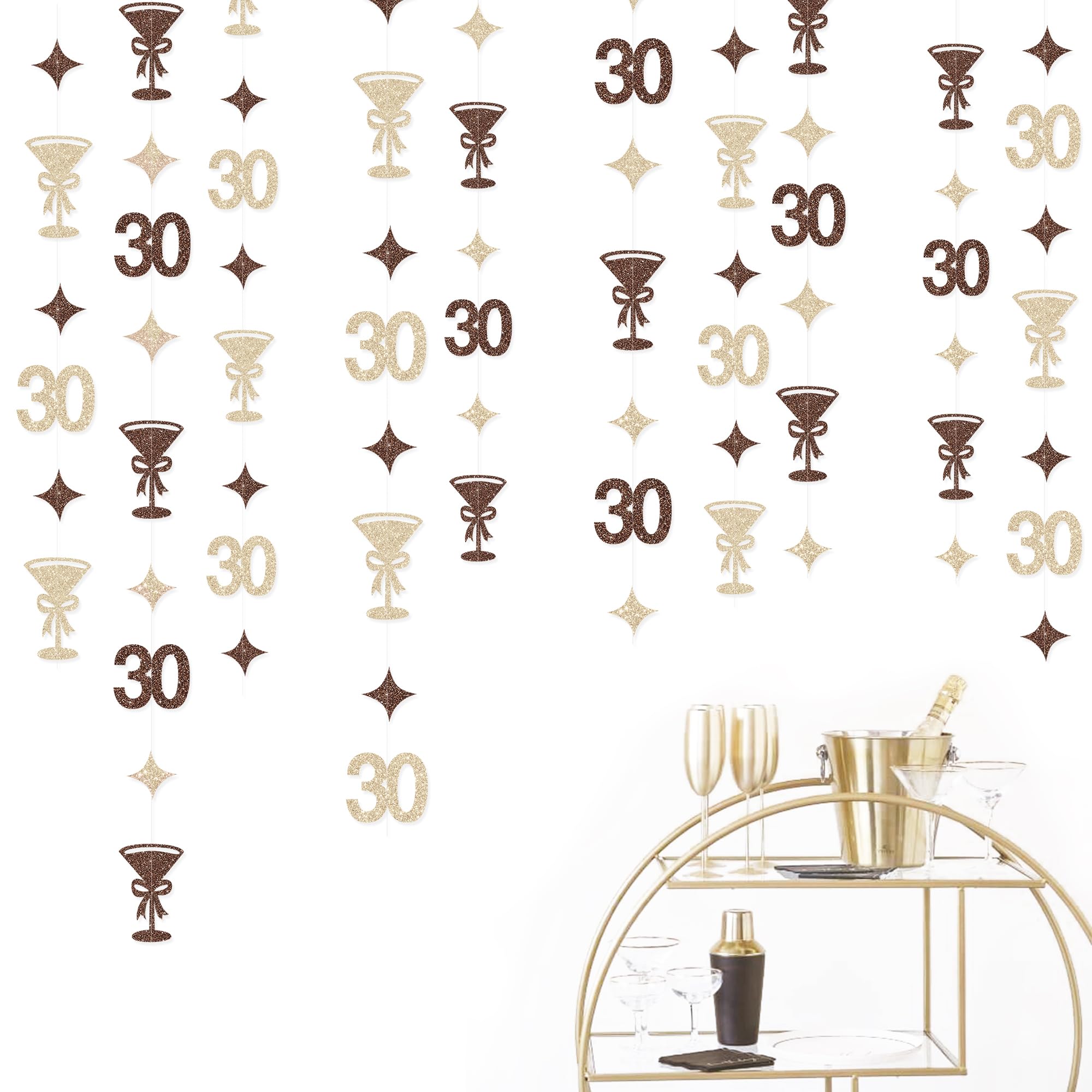 Our Champagne Gold Brown Martinni 30th Happy Birthday Party Decorations Kit includes: β 4 Pcs metallic and glitter star and martini garland including number 30We have the perfect decoration party supplies set for the occasion: Itβs perfect for: βΊ 30th birthday decorations βΊ Martini 30th birthday party decorations βΊ Thir-tini birthday decorations βΊHappy 30th birthday decorations βΊ 30 birthday decorations for her βΊ Thirty party decorations βΊ I'm 30 bitches decorations βΊCheers and beers to 30 years βΊDirty 30 birthday decorations for him βΊ 30th birthday decorations for women βΊ 30th birthday decorations for men βΊ 30 and fabulous decorations βΊ A tini bit older birthday decorations βΊ Engagement βΊ Anniversary βΊ Wedding Parties! Our martini 30th happy birthday party decorations is ready for its close up - we can't wait to see what memories you create! Have fun!