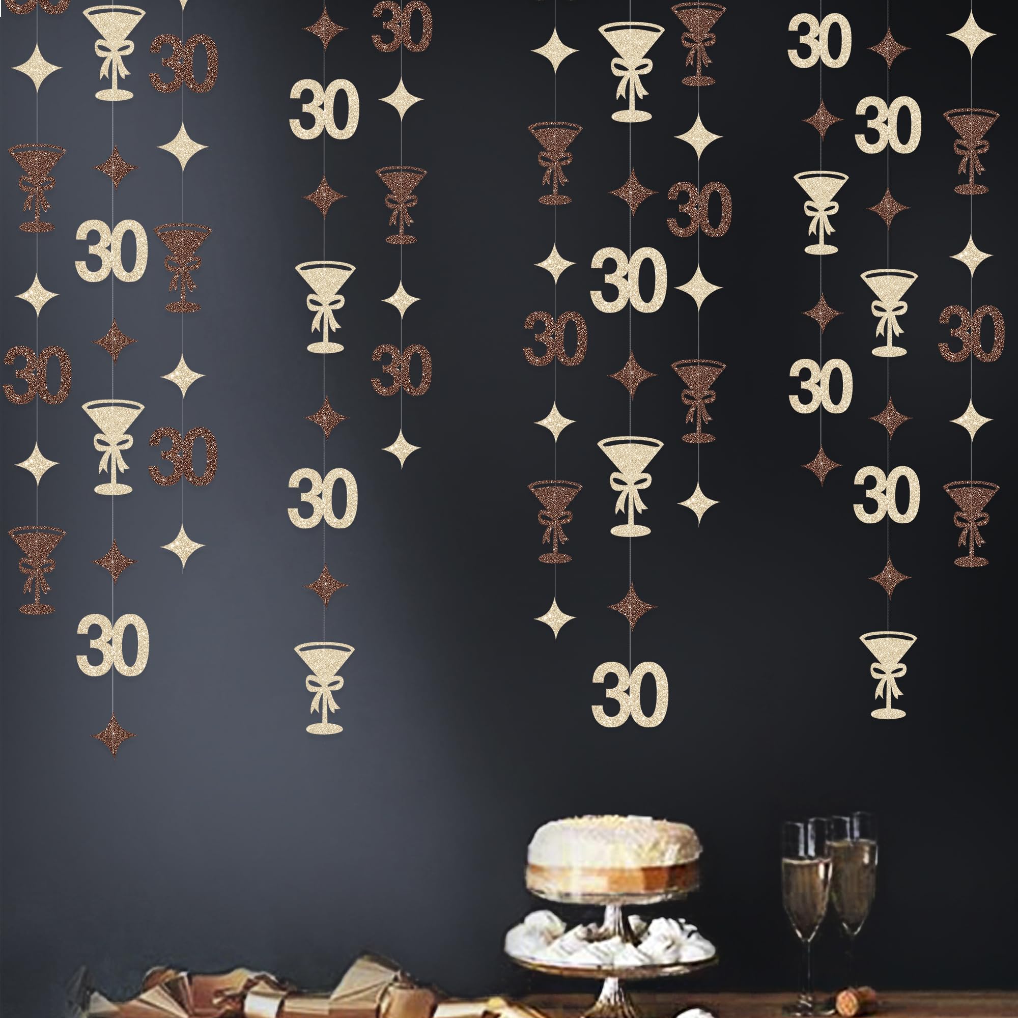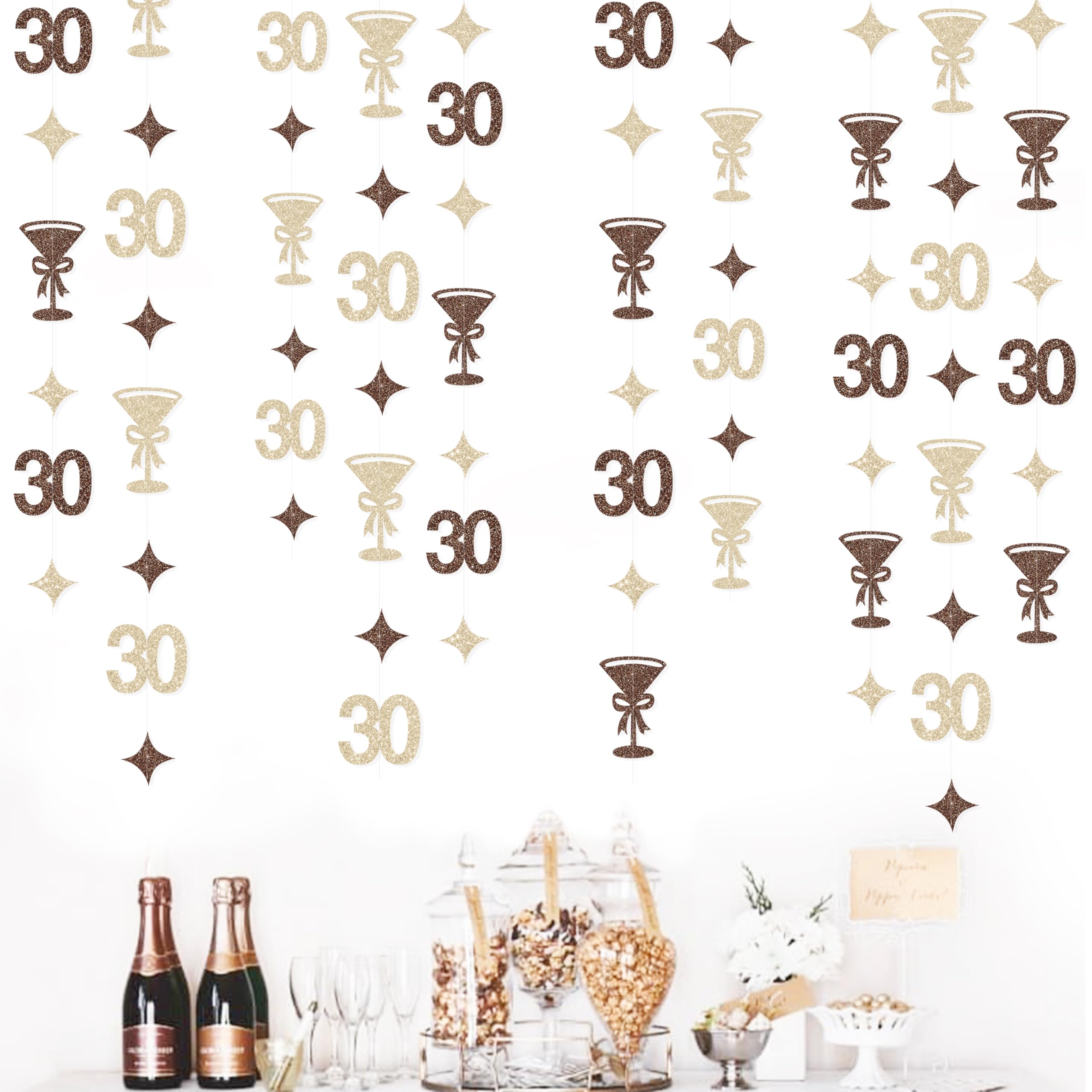 Package includes: 4 strings of 11.8 feet/3.6 meters champagne gold brown number 30,martini and sparkling twinkle star garlands , totally is 47.2 feet/14 meters. Perfect for martini 30th birthday decorations!