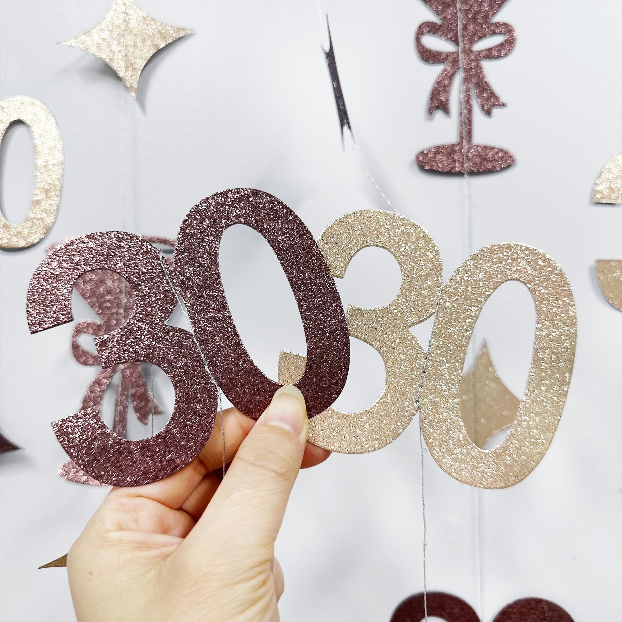Environmental Material: Our champagne gold brown 30th martini birthday decorations for women/men birthday anniversary garland are made with high quality double sided metallic and glitter paper cardstock, carefully hand-made and connected with thread, durable and reusable in nice and bright colors.