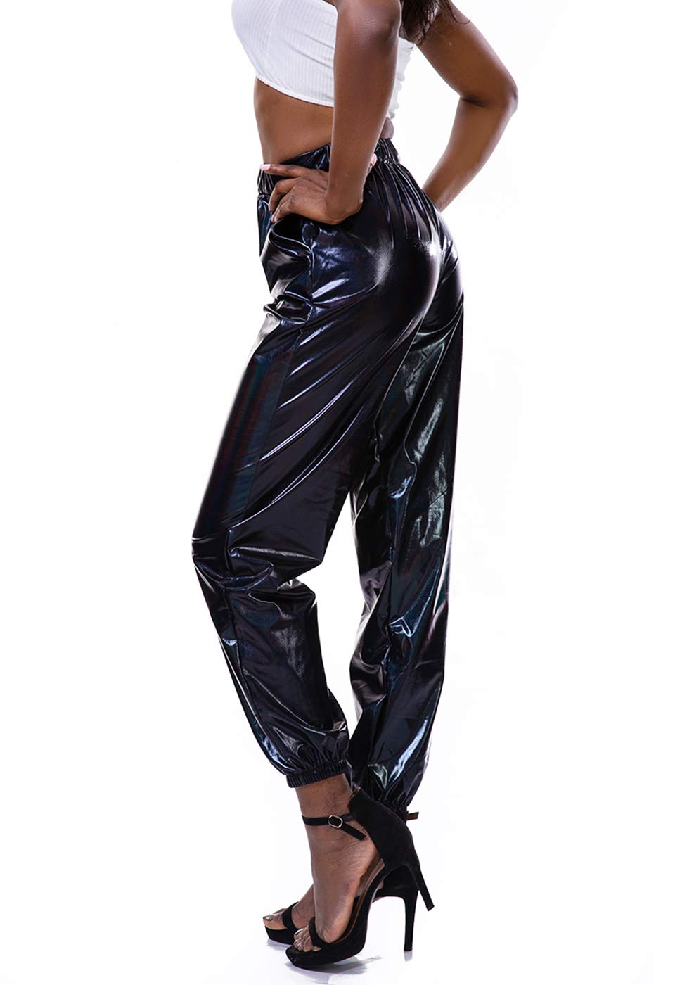 MULTI-PURPOSE WEAR: These snug, figure flattering faux leather Holographic Sweatpant for women and teens are your go to pair for everyday wear, and easy to pair with T-shirts, fleeces or any garment. With their bold color, lightweight fabric and elasticized waist, they complement every outfit and are a perfect fit for work, play, casually relaxing at home.