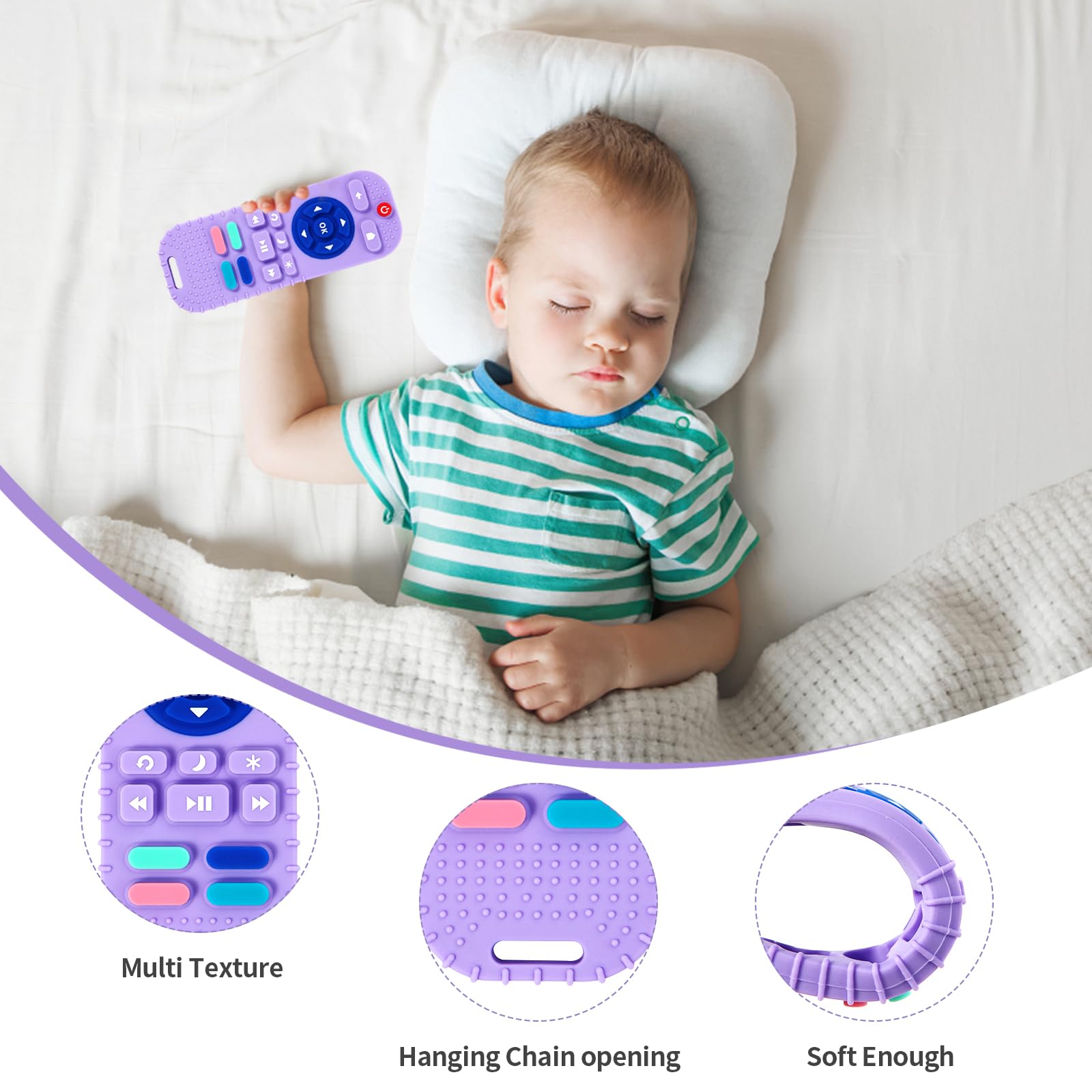 【Scientific Design For Babies】 The Silicone Baby Teether Toys are designed with the appearance of a remote control, which can satisfy the baby's curiosity; Toddler Teether Toy have different protruding textures and bumpy massage particles, which can massage the baby’s gums and easy grasp by babies; Baby Teethers colors are bright, which can improve the baby's color recognition.