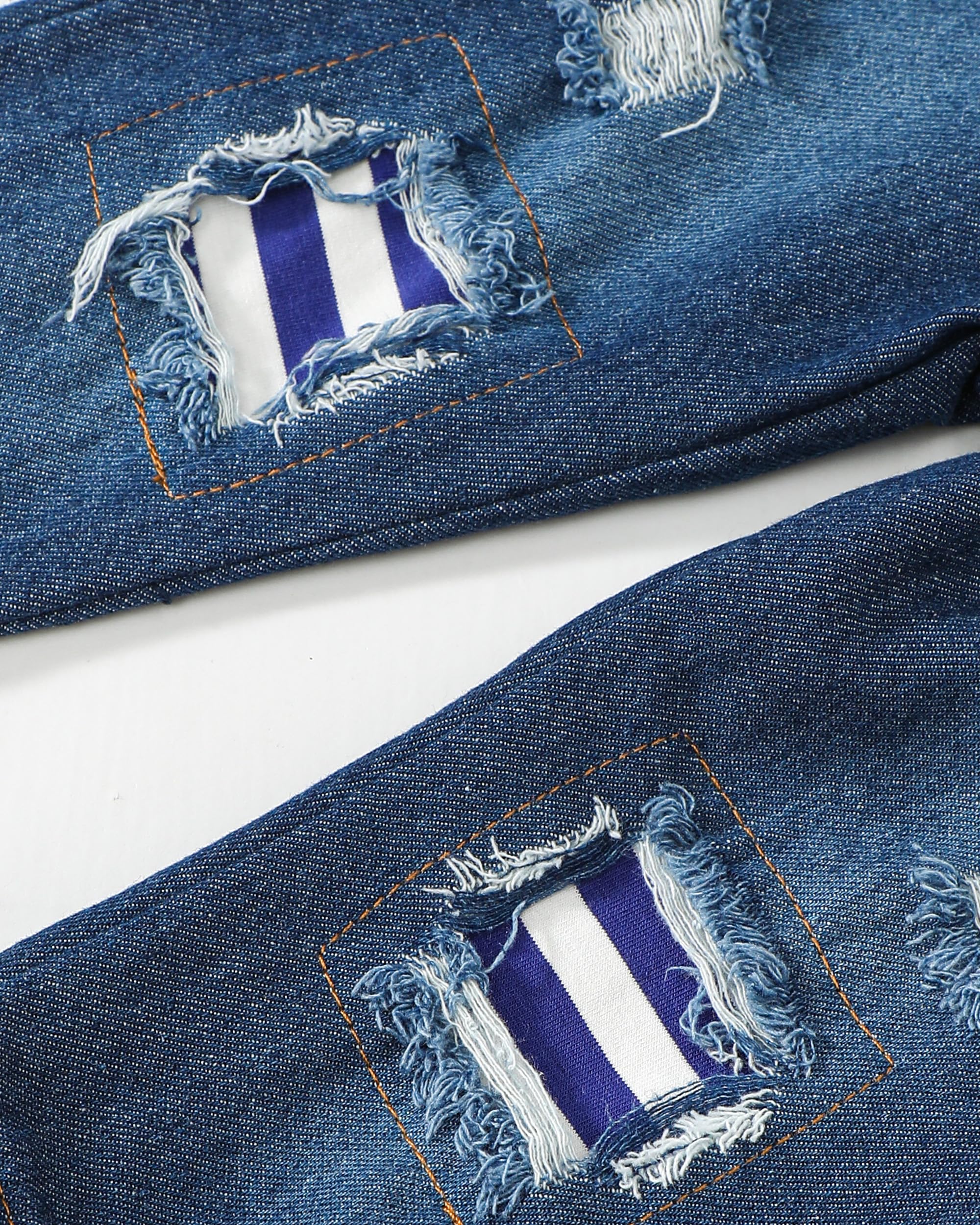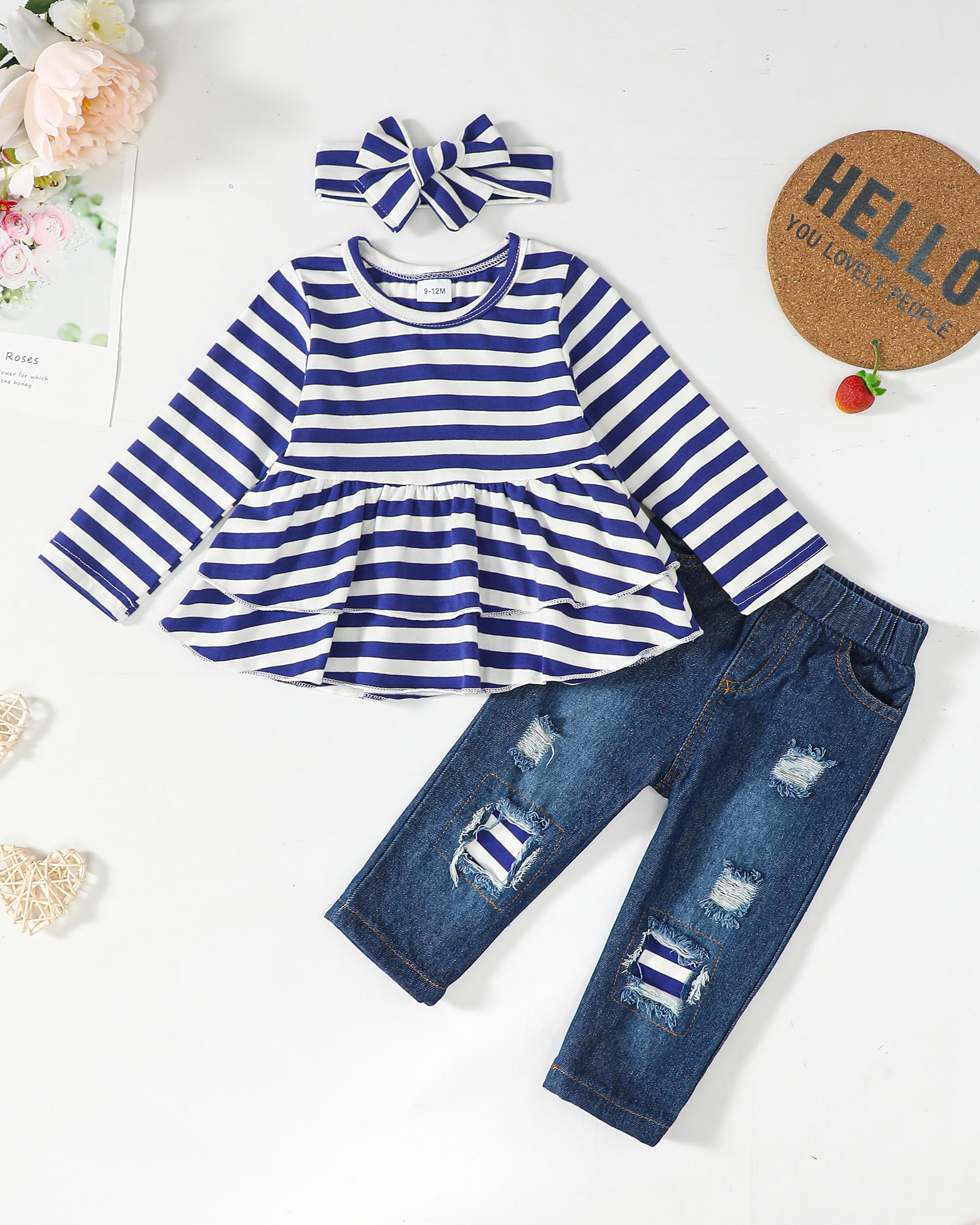 Package Included: 1 x striped shirt + 1 x ripped denim pants + 1 x cute headband.
