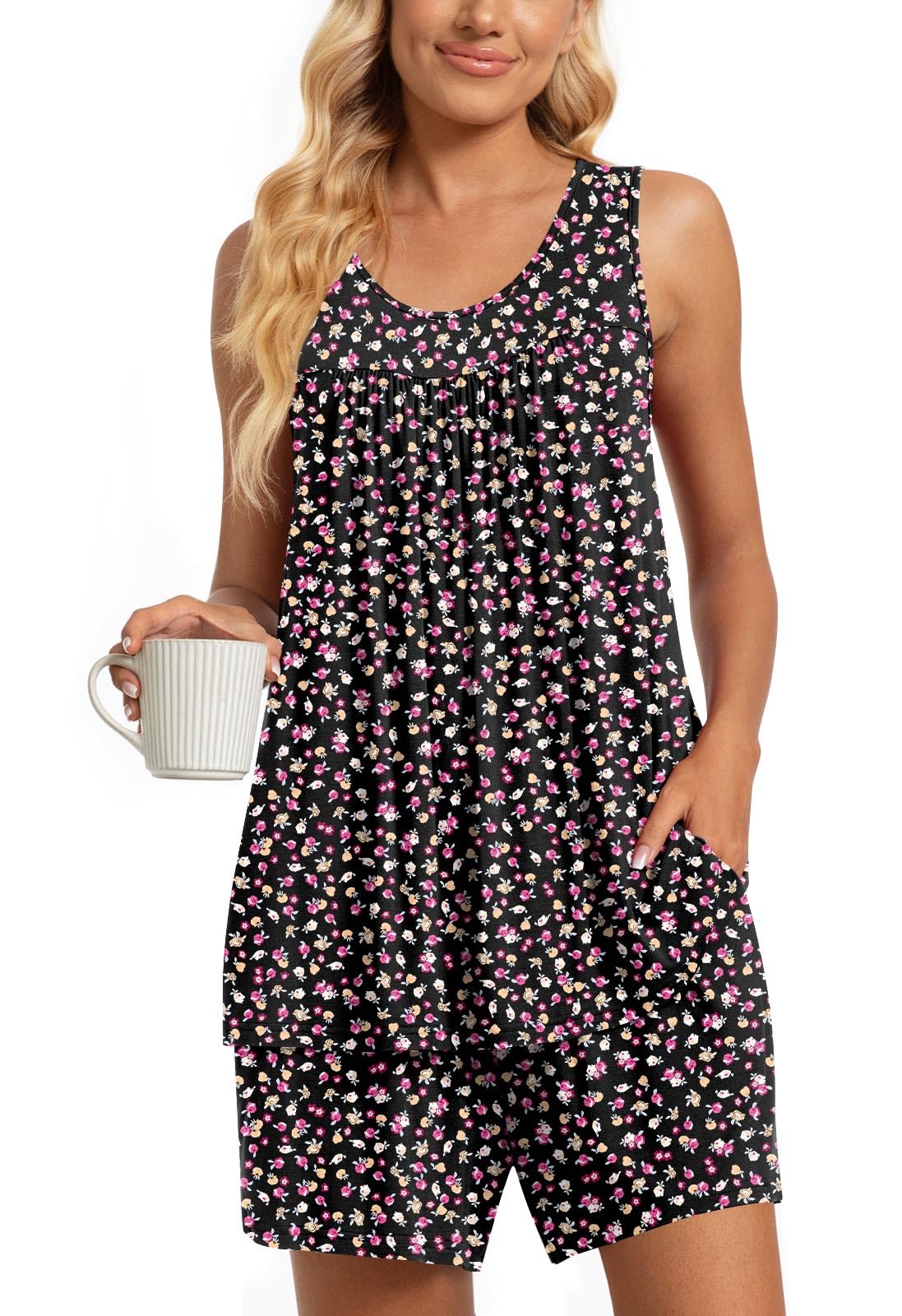 STYLE AND GENEROUS: Wide Shoulder Strap Halter(more comfy tank spaghetti), Pleated Design (Featuring Pleated design on the front and back, this tank sleep dress looks particularly cute), Above Knee Length ( More cold, young and vigor), Soft Fabric (Made of Soft comfy fabric)