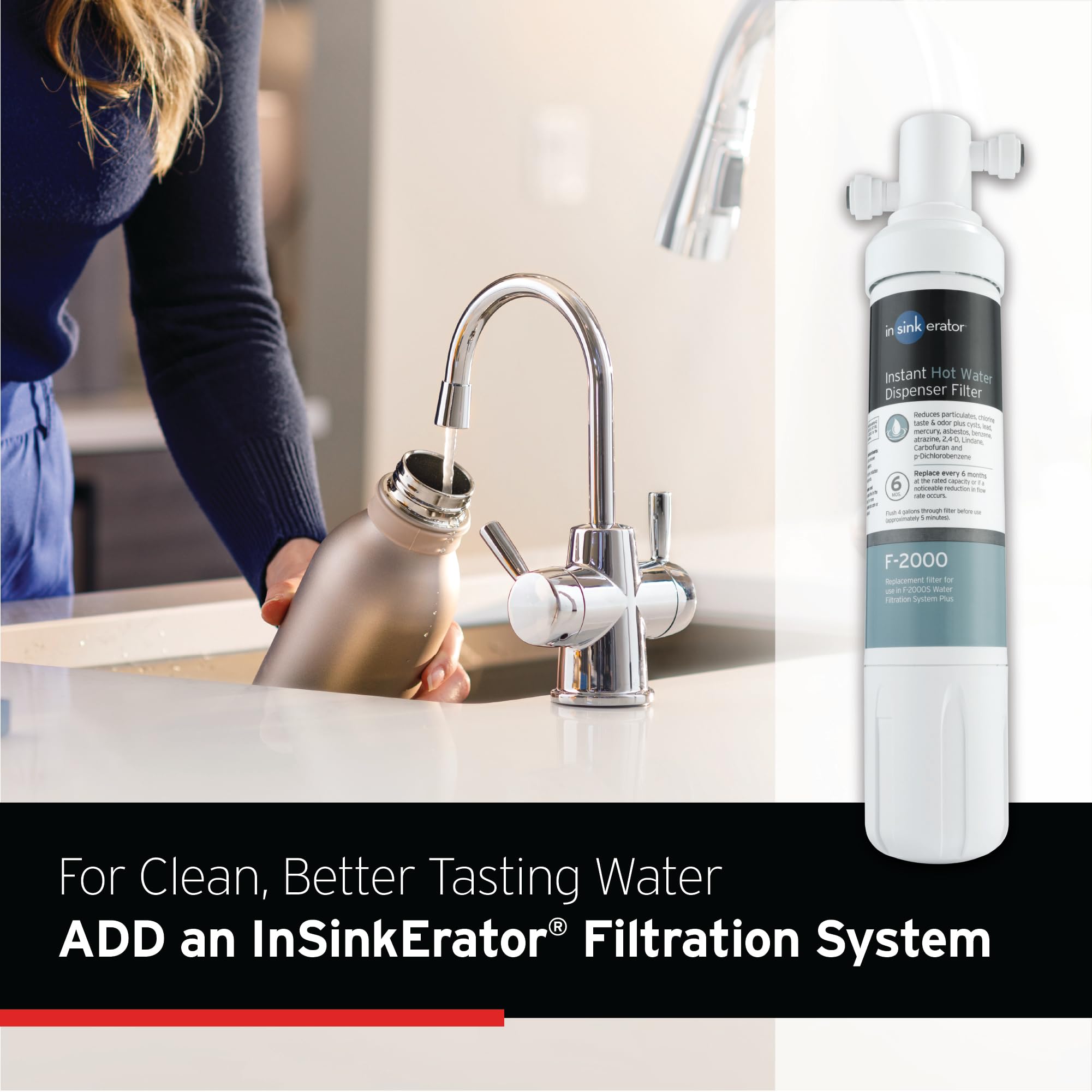 FILTER-READY COLD DRINKING WATER FAUCET: Option to add an InSinkErator water filter to instant hot water heater and dispenser, ensuring hot and cold drinking water tastes and smells great and improving water quality by reducing harmful impurities