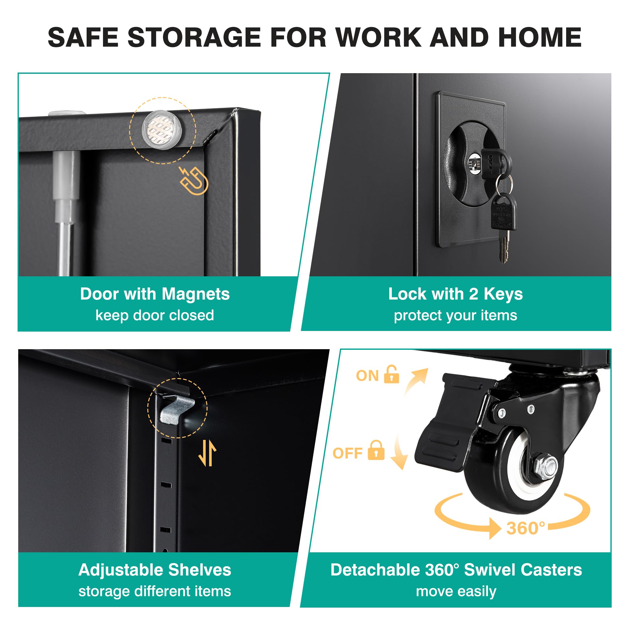 【Assemble Easily and Fast Service】: Mobile Metal cabinet comes with easy-to-follow instructions, and numbered parts, with just a few simple instructions, you can assemble cabinets with doors in 30 minutes. Quality first, service first. If you have any problems, please get in touch with our online customer service. We will help you solve your worries within 24 hours.