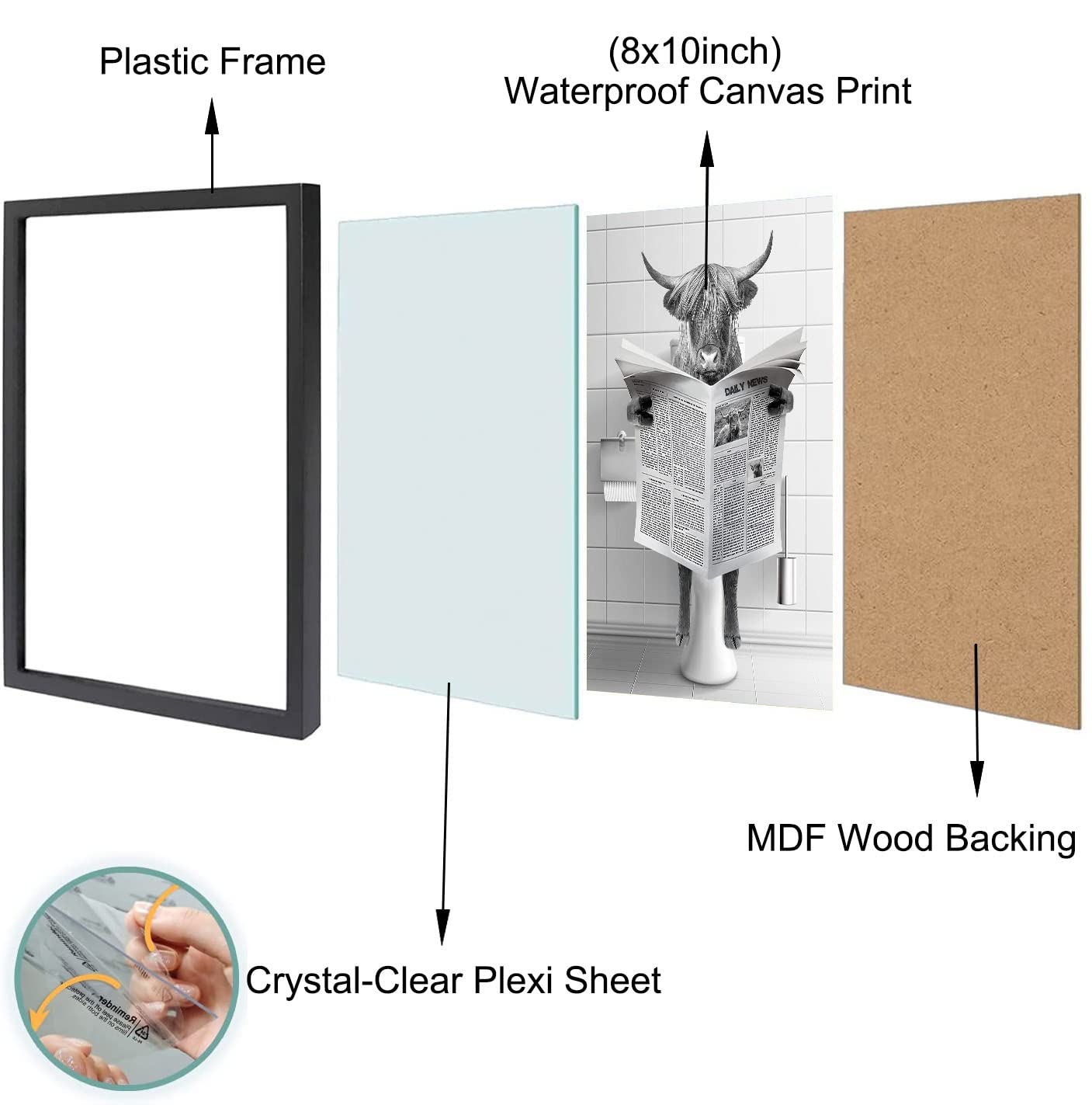 ♥【High-Quality Canvas Prints】 Our art prints are printed on high quality canvas with UV-resistant inks that are anti-fading and toxic-free. Our plastic picture frame are perfect for creating a personalized, relaxing ambiance in any room.Whether you're decorating your bedroom, bathroom, or any coner, our framed highland cow wall art will add a touch of sophistication and warmth to your space. This cute cow wall art is good choise for child's room or child's bathroom.