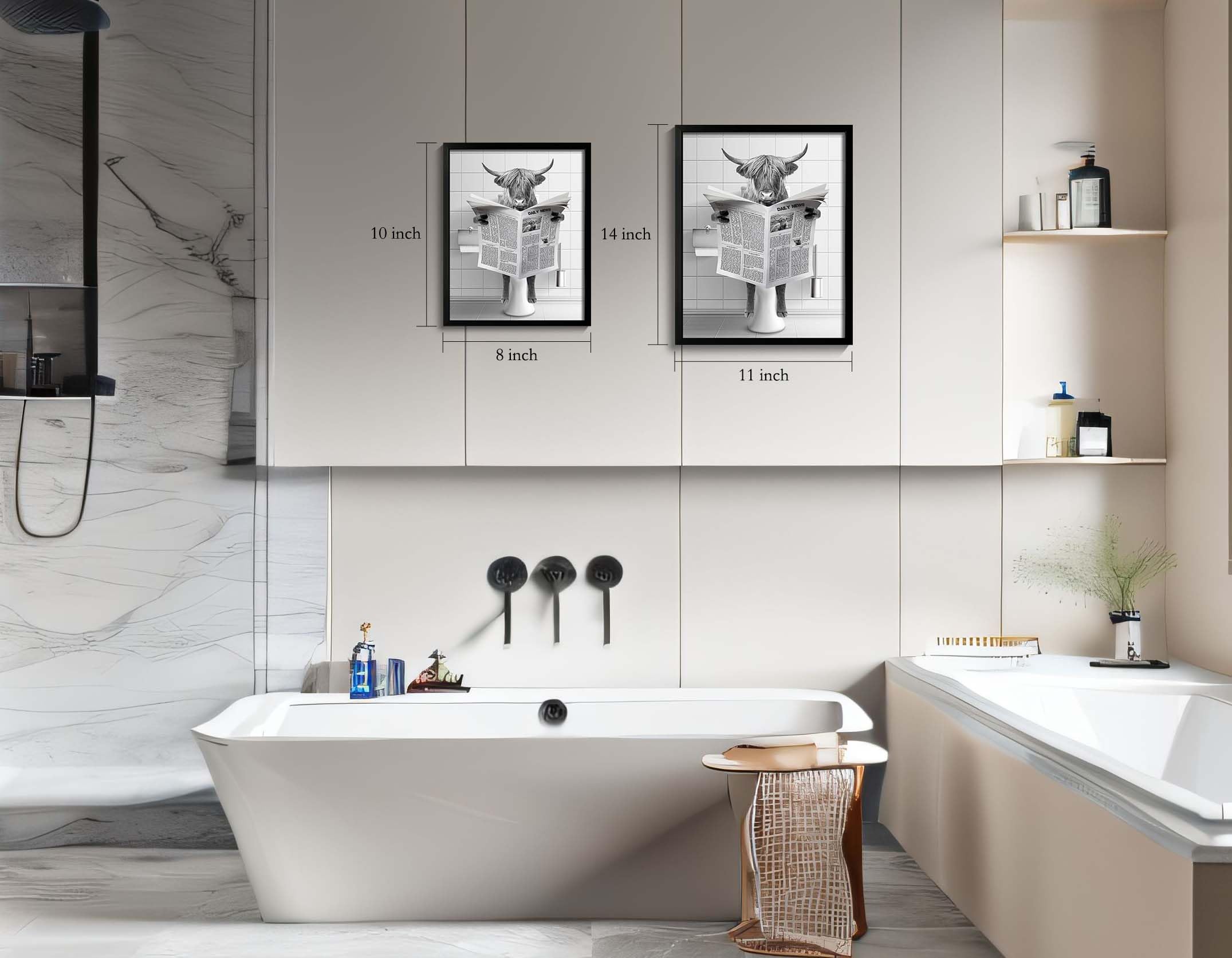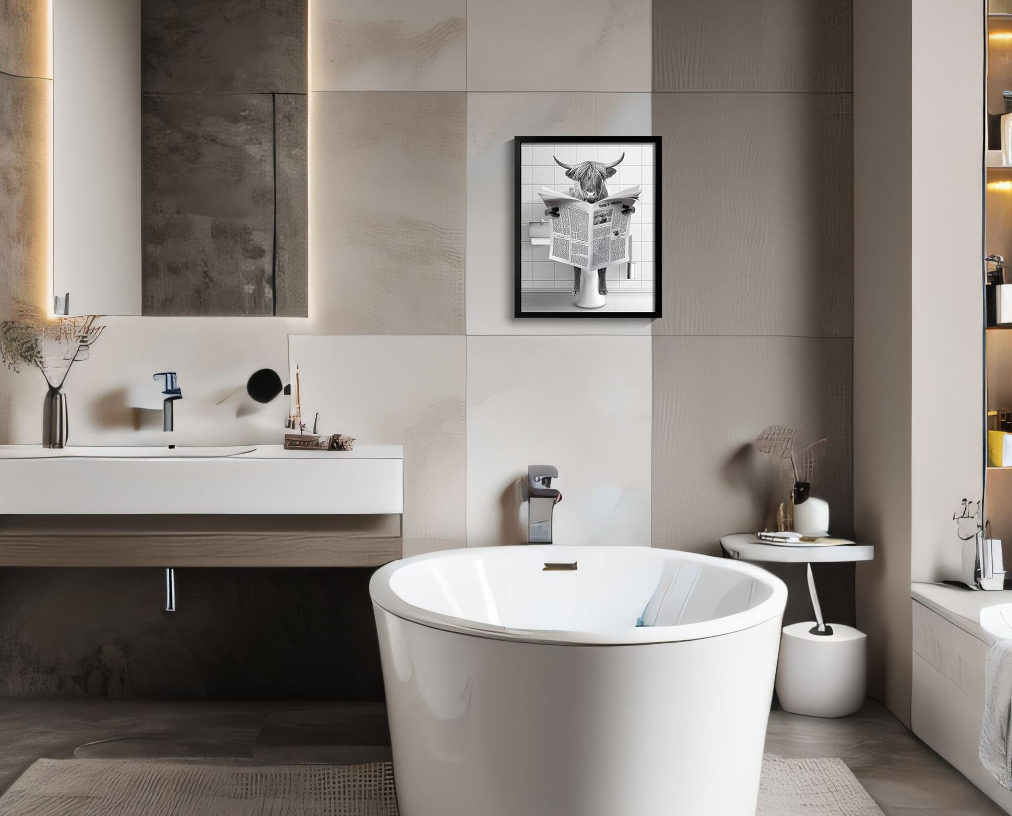♥【Ready to Hang】This framed highland cow wall art comes with everything you need to hang it up as soon as it arrives – no complicated assembly or extra tools required, this bathroom decor wall art is best choce for home decor.