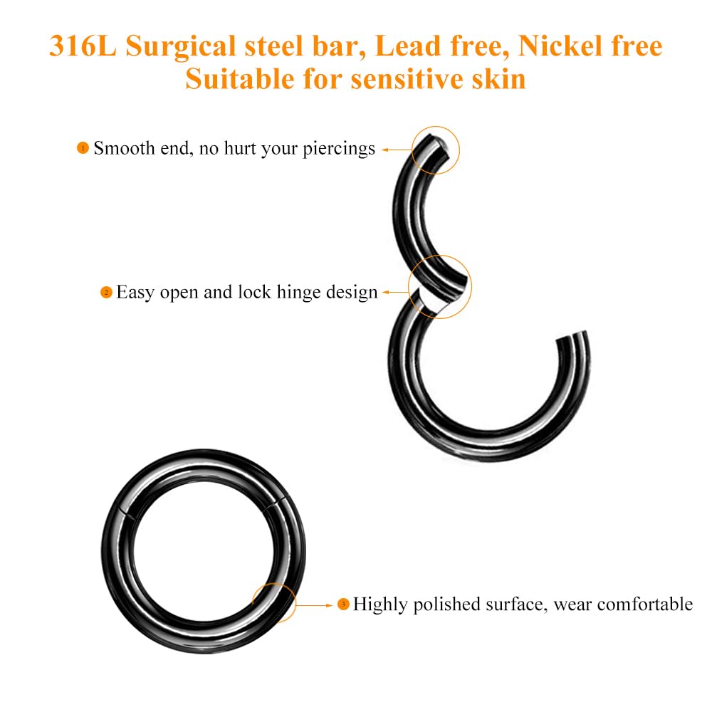 Hypoallergenic Material - Made of 316L surgical steel, and high polished smooth surface, comfortable to wear, high resistance to rust and corrosion, more importantly, it is Hypoallergenic.