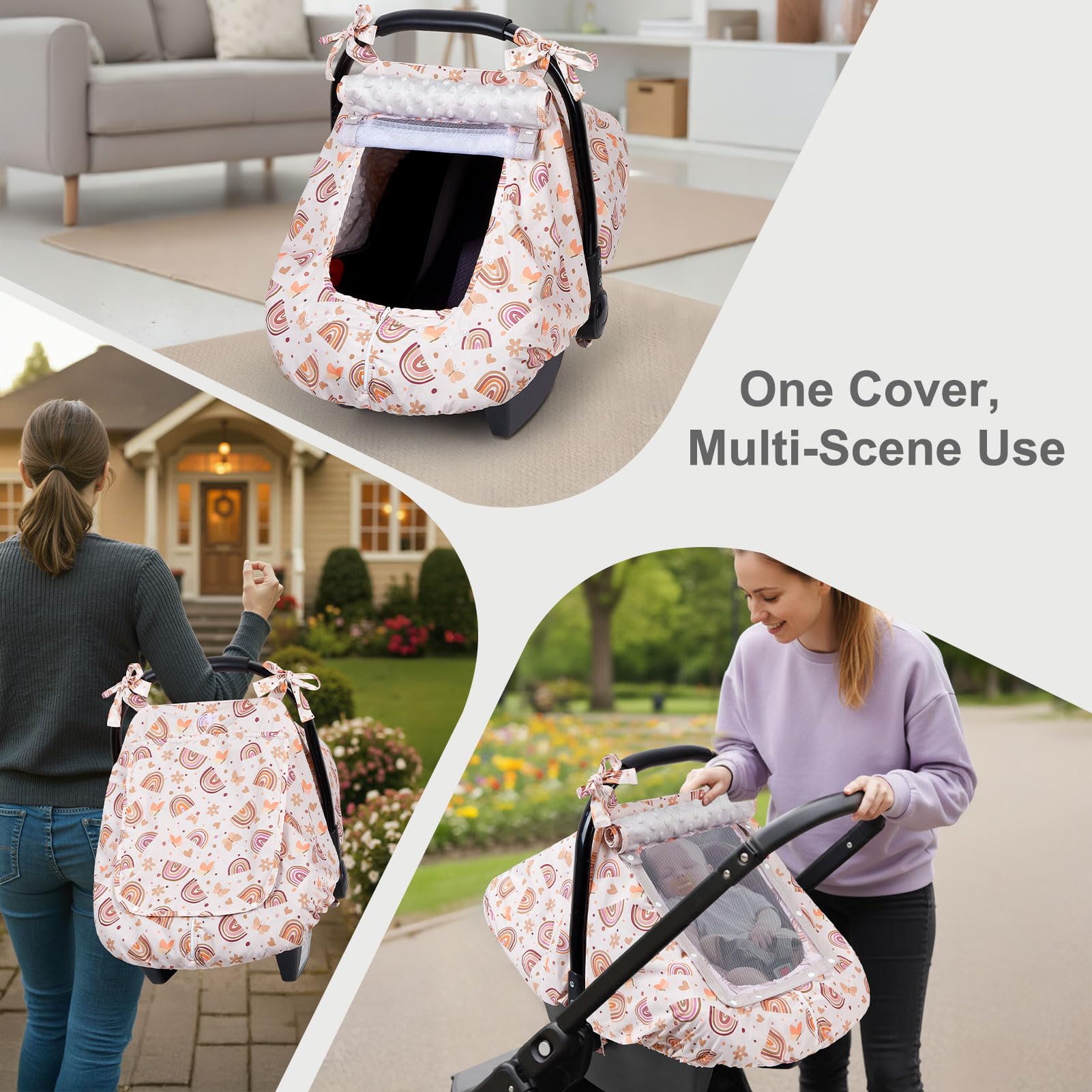 Ideal Baby Accessories: The carseat cover girls is the Ideal choices for newborns; Not only is pretty appearance and multiple functions, but convenience to get inside or out carseat without removing the entire infant car seat cover; Mesh window design, four seasons general