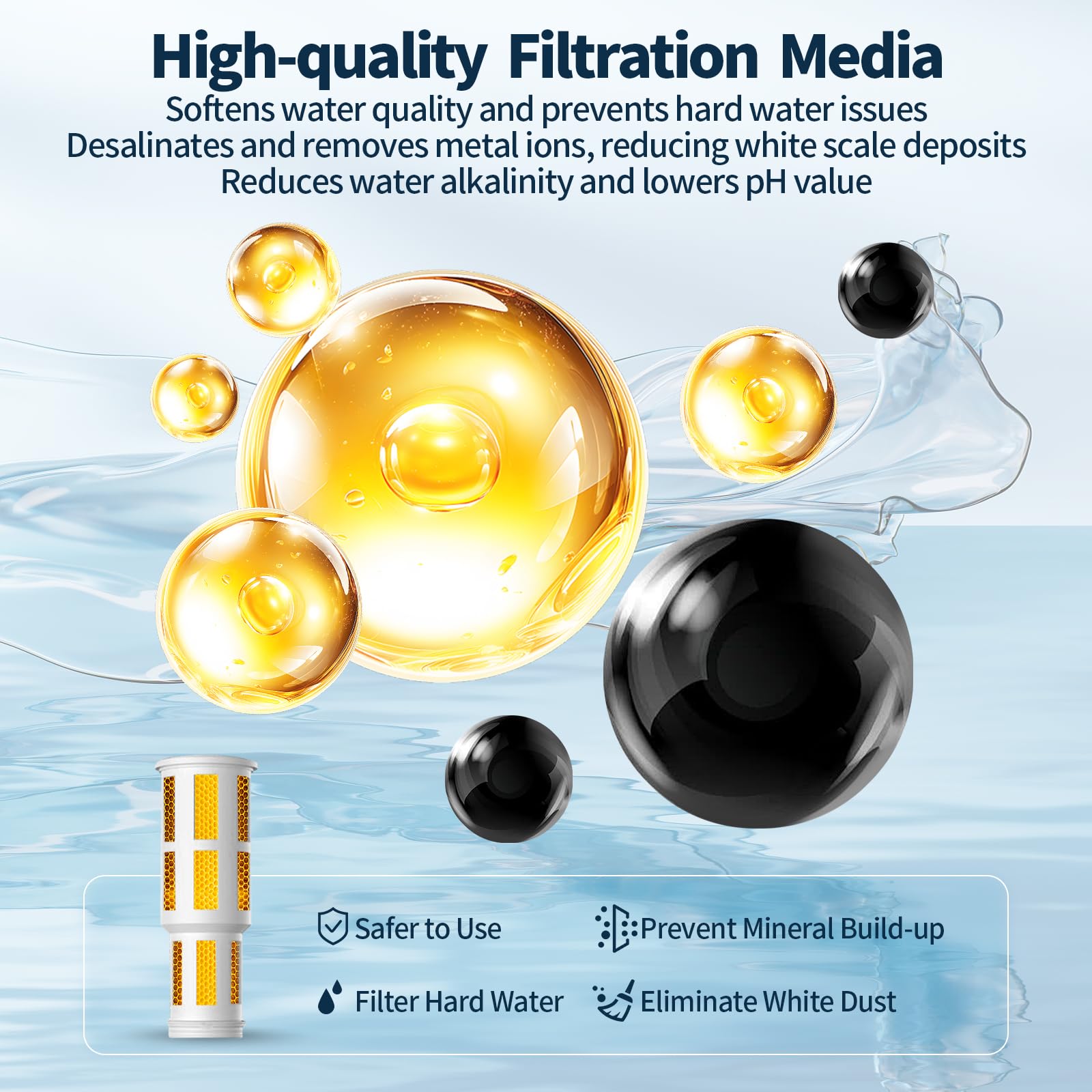 3-Layer Filtration System:The outer layer adsorbs impurities; the ion-exchange resin in the middle layer filters heavy minerals, such as calcium and magnesium ions; and the inner layer traps additional impurities before the water is released
