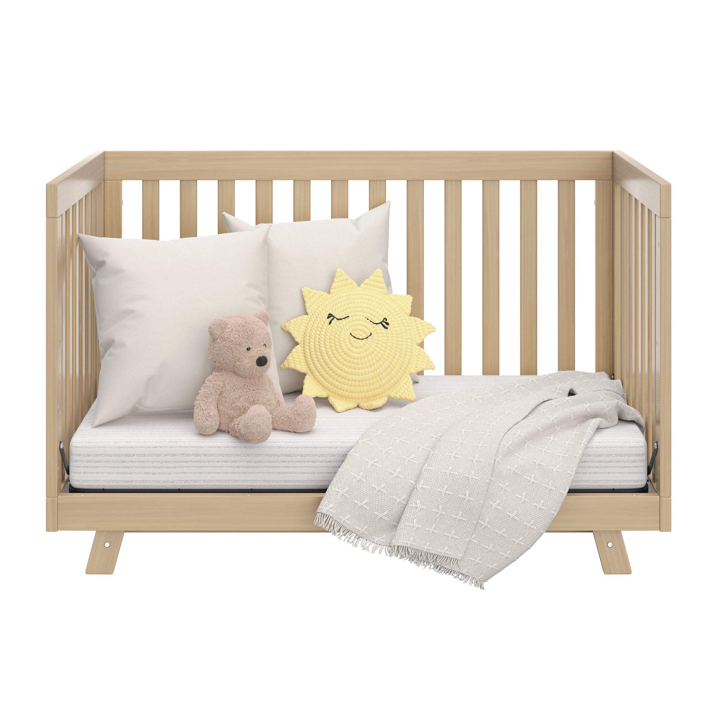 GROWS WITH YOUR BABY: Adjustable mattress support with 4 height options, including a higher position for newborns. Fits any standard full-size crib mattress (sold separately) and includes a 1-year limited warranty.