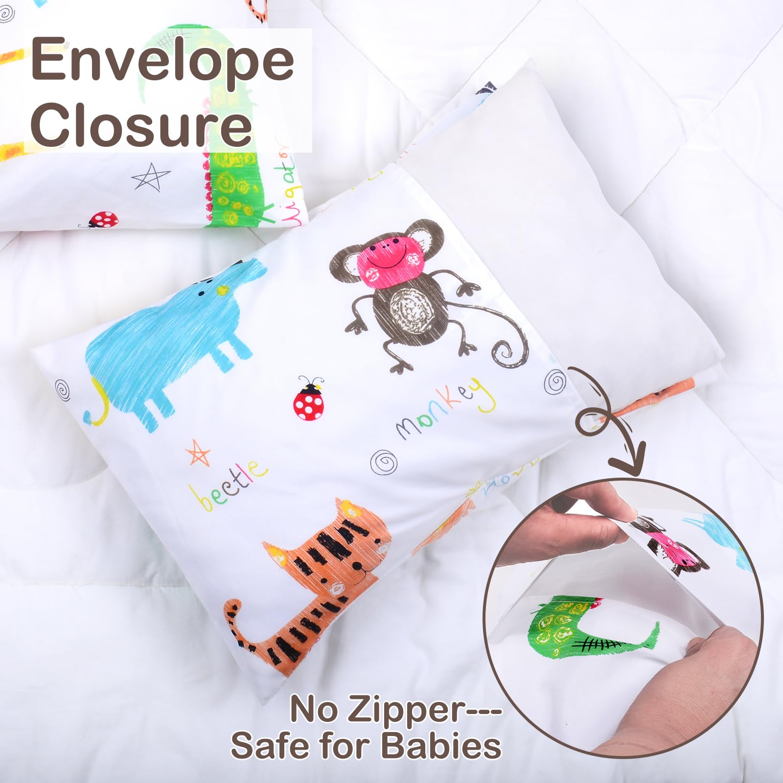 【TODDLER PILLOWCASE SIZE】: 2x Kids Toddler Pillowcase(13”x18”) (PILLOWS ARE NOT INCLUDED.THE MATCHING TODDLER PILLOWS ‘B07FY8JXHS’IN OUR STORE ARE IN STOCK)Fits for 100% polyester Pillowslip Case fits Pillows sized 13x18, also fits 12x16 (loose fit) Toddler and Travel Pillows. Great for Night sleep and Travelings.