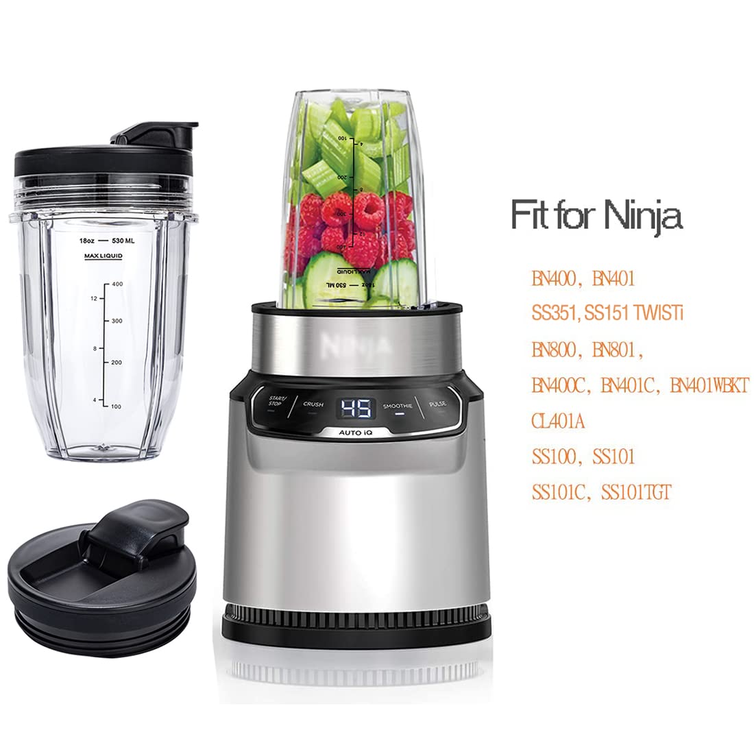 These replacement Cups fit ninja BN401 Nutri Pro, SS351, SS151 TWISTi DUO, SS100, SS101, BN400,BN800, BN801, BN400, BN400C, BN401C,BN401WBKT, CL401A, SS101C,SS101TGT Blender.