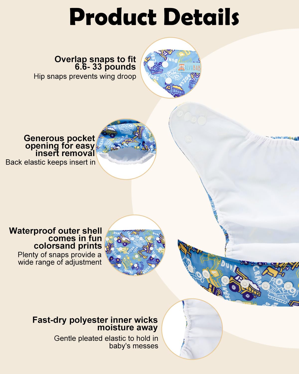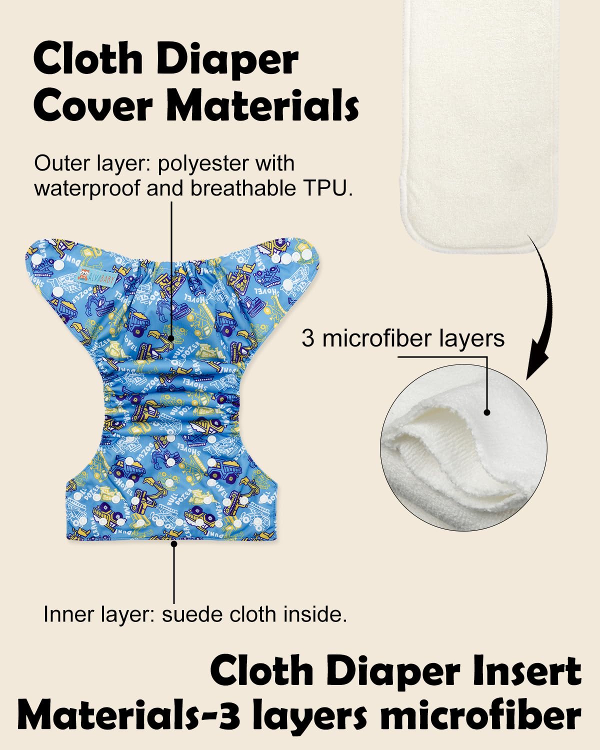 High Quality, Adjustable, Reusable & Waterproof : Waterproof & breathable TPU outer + moisture-wicking suede cloth inner. Includes two 3-layer inserts (13.7”x5.5”) per diaper. Perfect for active parents.