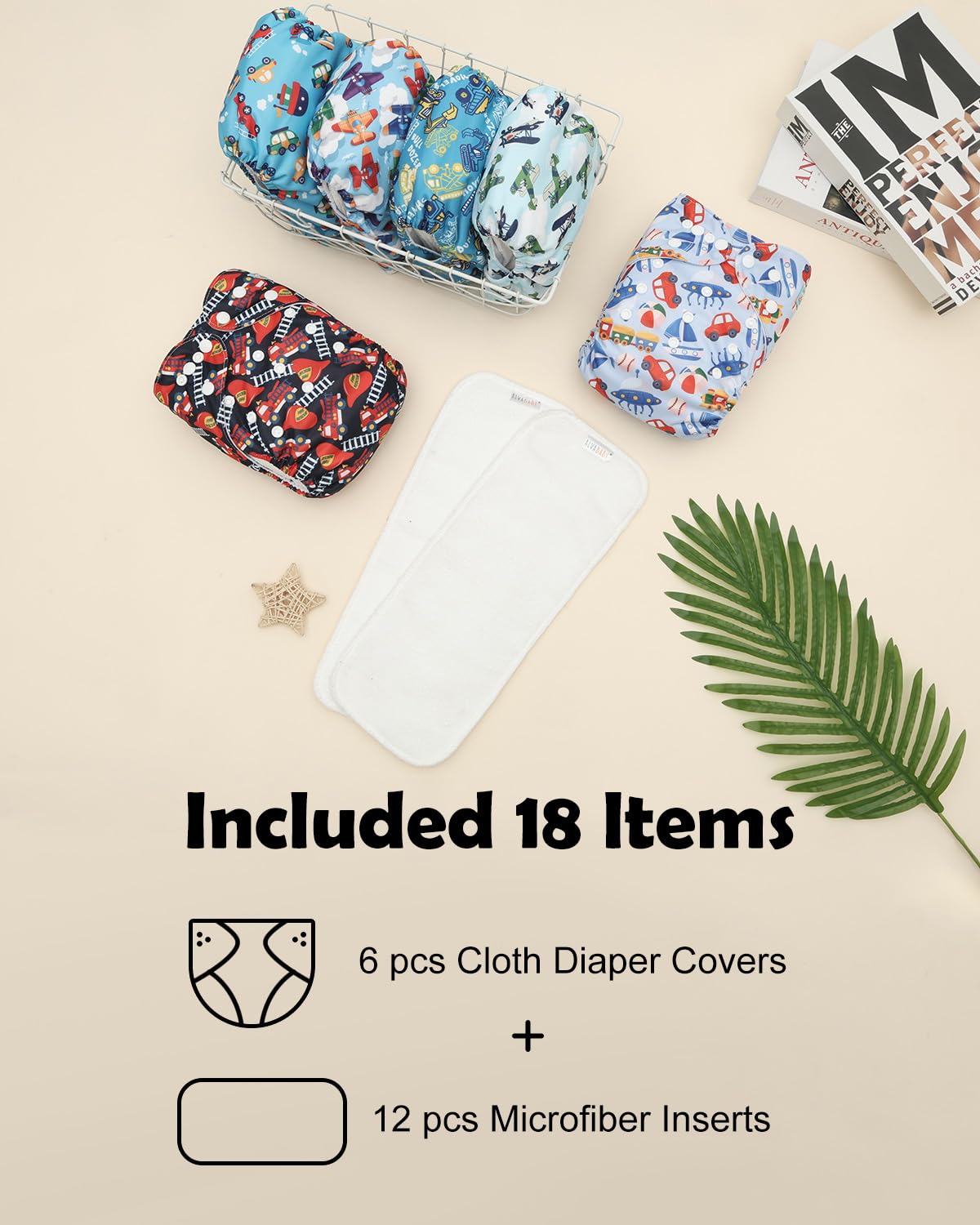 Packing List: 6 diapers + 12 inserts. Complete solution for lasting dryness and comfort.