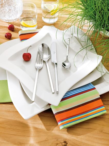 The New Wave flatware set by Villeroy and Boch will add vibrancy to your table setting. You will enjoy the polished, mirror-like finish and modern tapered handles of this beautiful 64-piece set. New Wave is an excellent choice for casual dining and formal gatherings alike.