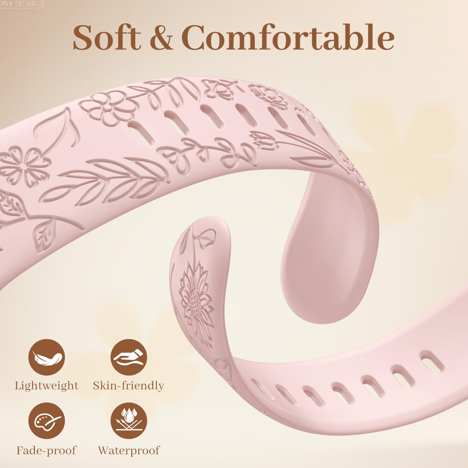 ✅ Soft & Smooth Silicone Comfort: Our floral bands are crafted from high-quality silicone, offering skin-friendly and exceptionally comfortable wear during workdays, workouts, and overnight sleep. These waterproof, lightweight, and durable straps provide an affordable yet premium accessory option for your Apple watch