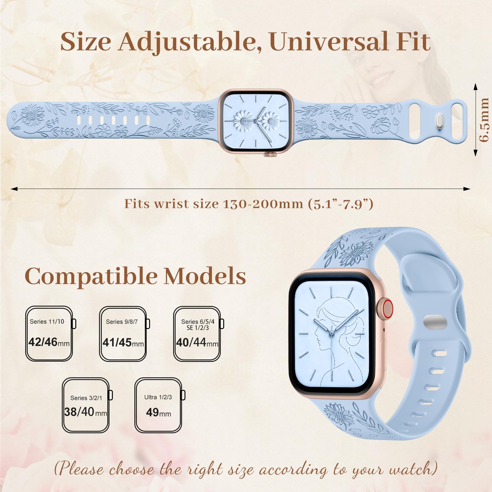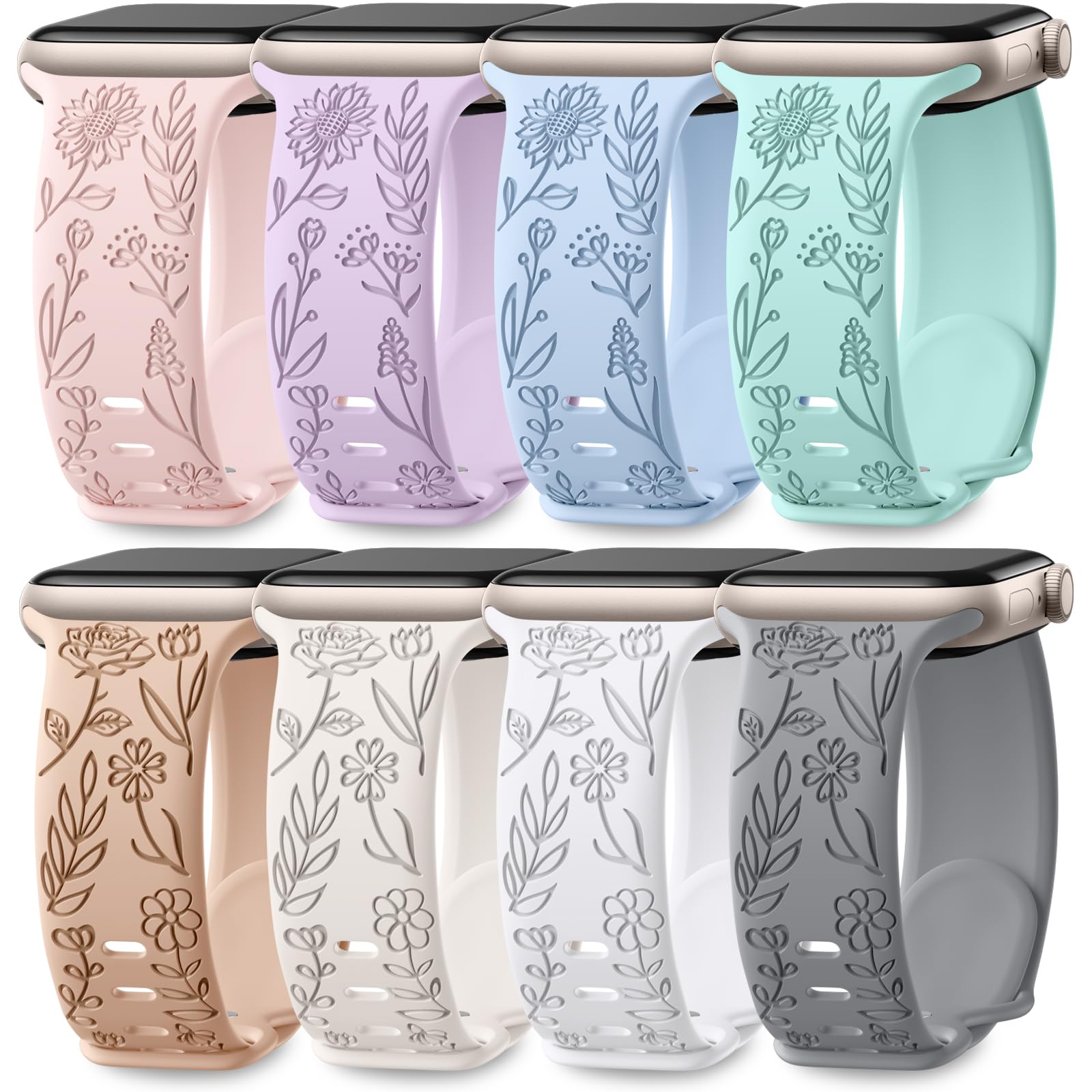 ✅ Floral Elegance for Your Apple Watch: Elevate your Apple watch style with our 8 pack floral engraved iWatch bands. Featuring intricate rose and cheerful sunflowers, they combine expert craftsmanship with trendy colors. Perfect for formal elegance and a touch of modern flair for casual wear