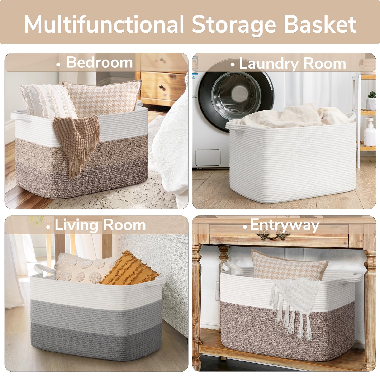Soft Material: The woven basket is made of cotton rope, which is soft yet holds its shape well. No need to worry about scratching clothes or hurting skin, suitable for families with babies or pets