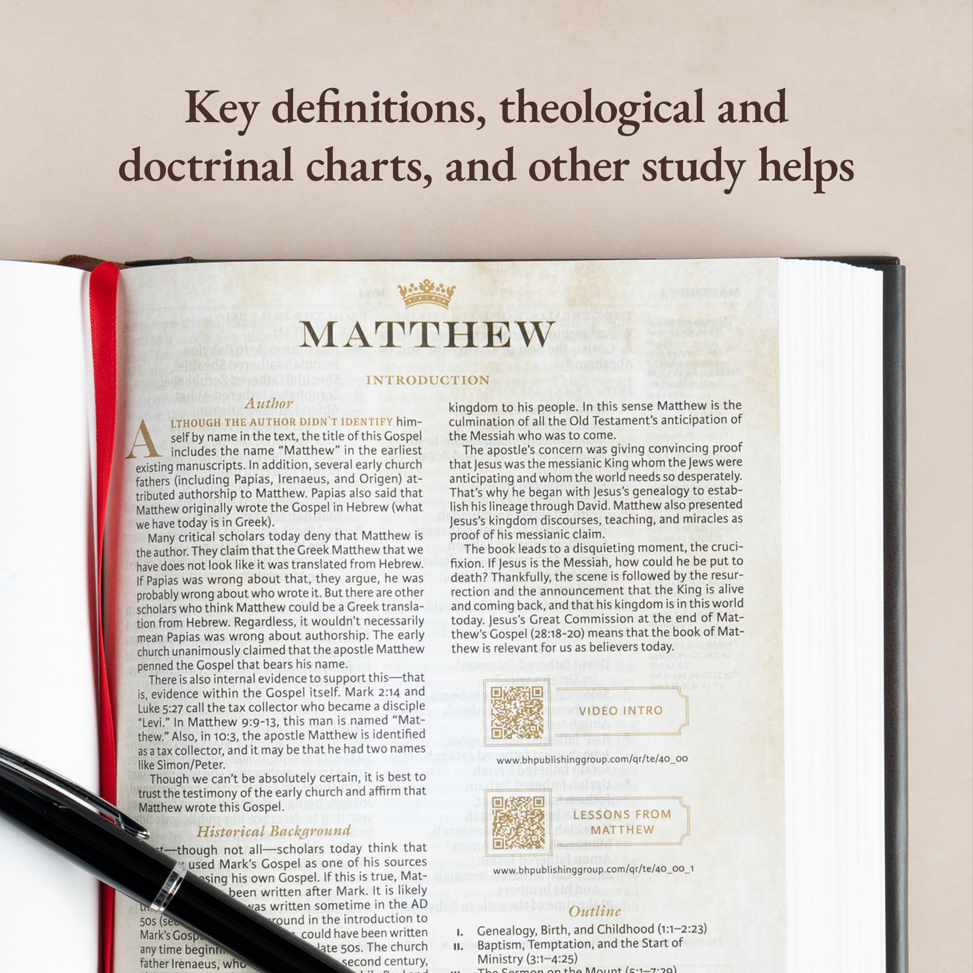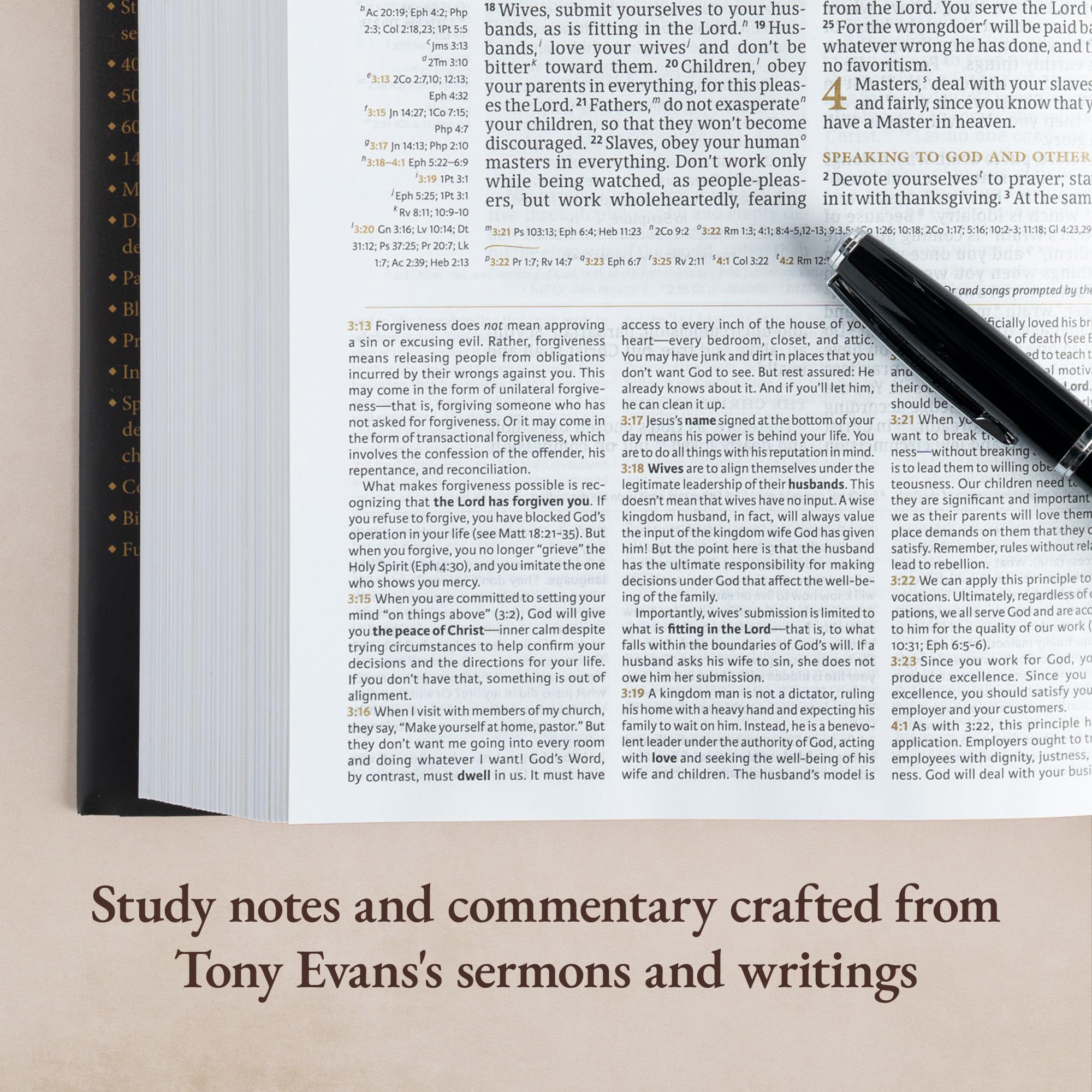 The CSB Tony Evans Study Bible includes extensive study notes, commentary, sermons, and writings crafted and curated by Dr. Tony Evans. Including over 150 videos via QR code, these features are strategically placed alongside the biblical text to explain God’s Word in a fresh way, guiding readers into a deeper understanding of Scripture. With tools for application, this Bible is designed to inspire readers to live and share the values of the kingdom of God. FEATURES: Study notes crafted from Tony Evans sermons and writings More than 150 videos of sermons, devotionals, and teaching from Dr. Evans accessible via QR codes 40 inspirational articles 50 “Kingdom Living Lessons” 60 “Questions & Answers” 140 “Hope Words” Special back matter section with key definitions, theological and doctrinal charts, and other study helps Robust page-edge cross-reference system Elegant two-color design Durable Smyth-sewn, lay-flat binding Two-column text format Topical subject headings 9.75-point type size Black-letter text Ribbon marker Concordance Bible reading plan Presentation page and special introductory front matter Full-color maps 6.6875” x 9” page size The CSB Tony Evans Study Bible features the highly readable, highly reliable text of the Christian Standard Bible (CSB). The CSB stays as literal as possible to the Bible’s original meaning without sacrificing clarity, making it easier to engage with Scripture’s life-transforming message and to share it with others. Dr. Tony Evans is one of the most influential church leaders of our time and has been faithful in his proclamation of the gospel for over fifty years. He serves as senior pastor of Oak Cliff Bible Fellowship in Dallas, Texas, and is the founder of The Urban Alternative, a ministry that promotes a kingdom-agenda philosophy designed to enable people to live all of life under the rule of God. BEST FOR: People serious about studying Scripture ― The inclusion of study notes, cross-references, topical headings, maps, reading plans, and concordance make this ideal for deeper study, sermon or teaching prep, or detailed personal study. Those who prefer a full-featured Bible rather than a minimalist “carry-around” version― Because it’s substantial (about 2000 pages) and has lots of extras, it works well as a primary study/reference Bible. Those who want a modern, readable translation ― The CSB provides an optimal balance between accuracy and clarity, making it accessible but still faithful to the original texts. New Christians or those wanting guidance ― The study notes and supplementary content can help provide context, explanations, and guidance, which can be especially helpful if someone is getting serious about Bible study for the first time. Teachers, pastors, small-group leaders, or anyone teaching or preaching ― The study tools + readable translation + robust content support preparing lessons, sermons, or group discussions. People who want a durable, long-lasting Bible ― Hardcover build with sewn binding and ribbon marker makes this a durable Bible that can handle frequent use over time. Individuals comfortable with a larger, heavier Bible ― Given its size and the additional content, it’s less a “pocket” or “travel” Bible and more a home, study, or church Bible. Discover more Tony Evans Study Bibles in the Lifeway Brand Store. To learn more about the CSB translation, visit the CSB brand store on Amazon. Easter Gifts for the Entire Family - Shop the Lifeway Easter Collection on Amazon!