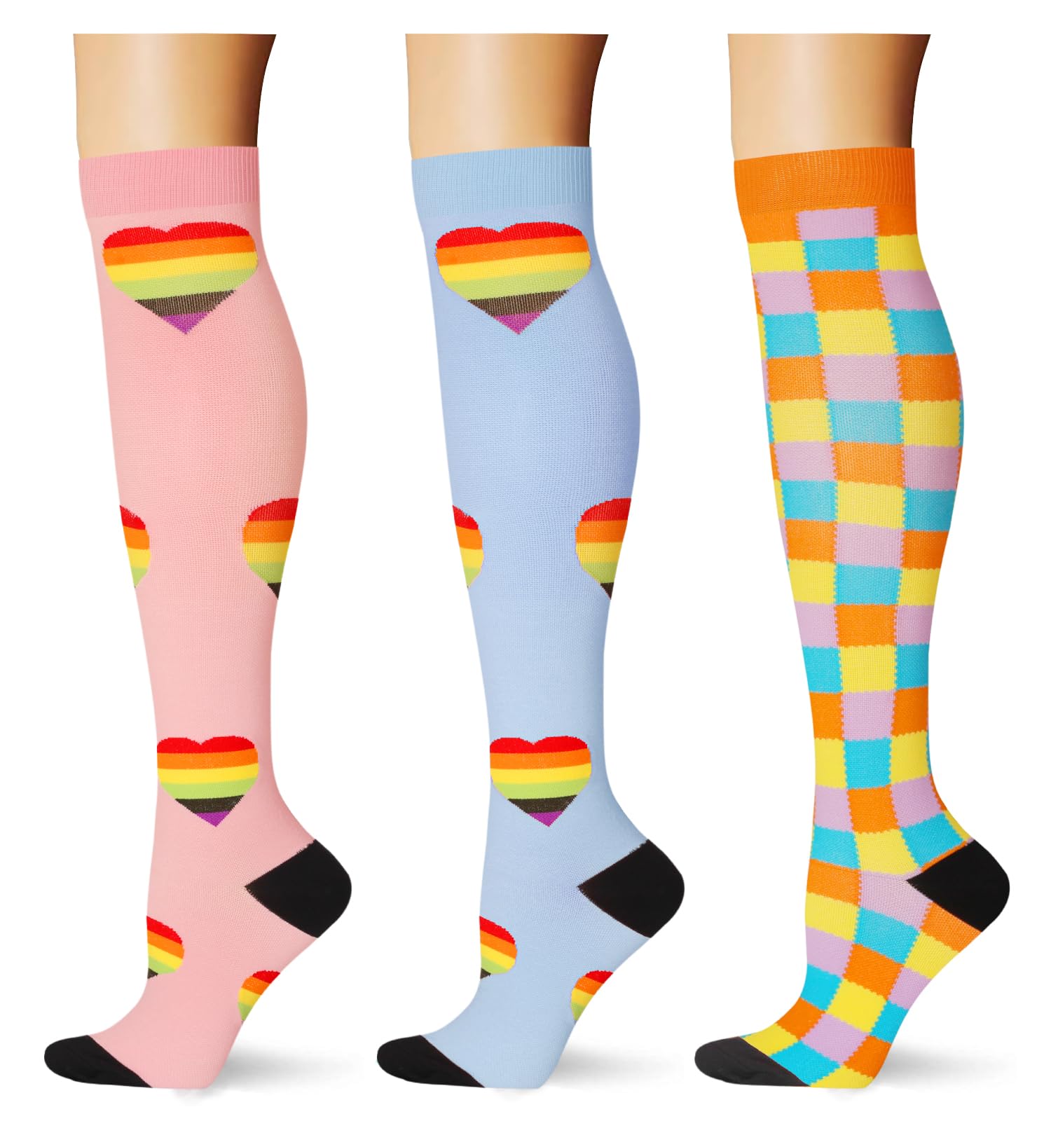 COMPRESSION: Our compression socks provide graduated compression, with pressure highest at the ankle and gradually decreasing upward. The targeted compression stimulates blood flow circulation, decreases muscular fatigue and improves athletic performance. These compression socks are suitable for sports training and daily wear.