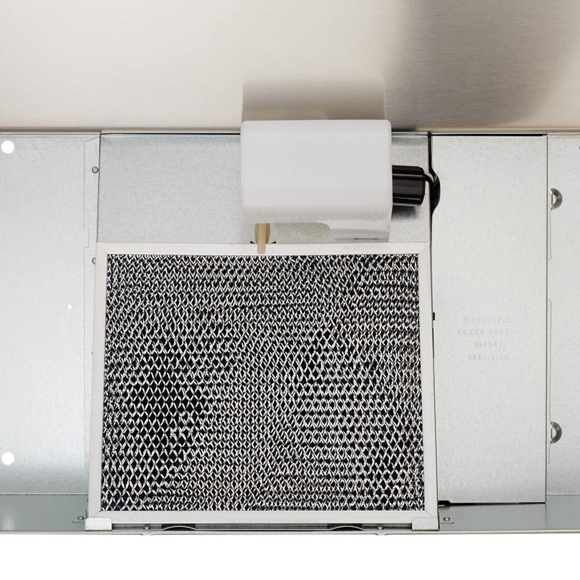 HIGH-QUALITY DUCTLESS RANGE HOOD INSERT: Stainless steel hood insert improves ventilation and lighting over your stove with the non-ducted filtration system that effectively removes smoke and odors