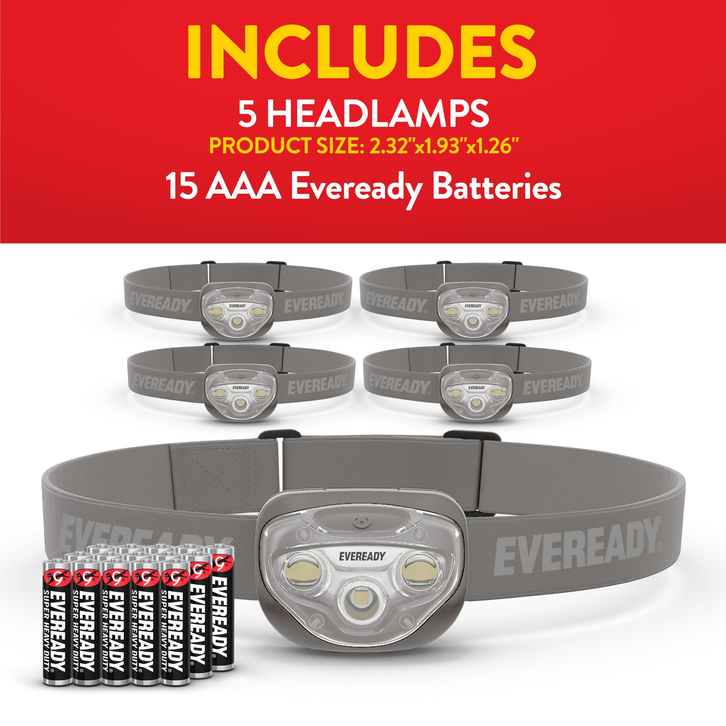 Five pack of Eveready LED Headlamps with 3 Eveready AAA batteries